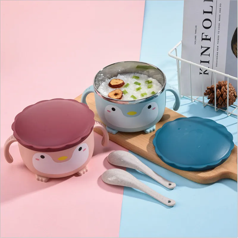 Versatility of the Infant 304 Stainless Steel Tableware – Cute Penguin Cartoon Baby Bowl with Handle