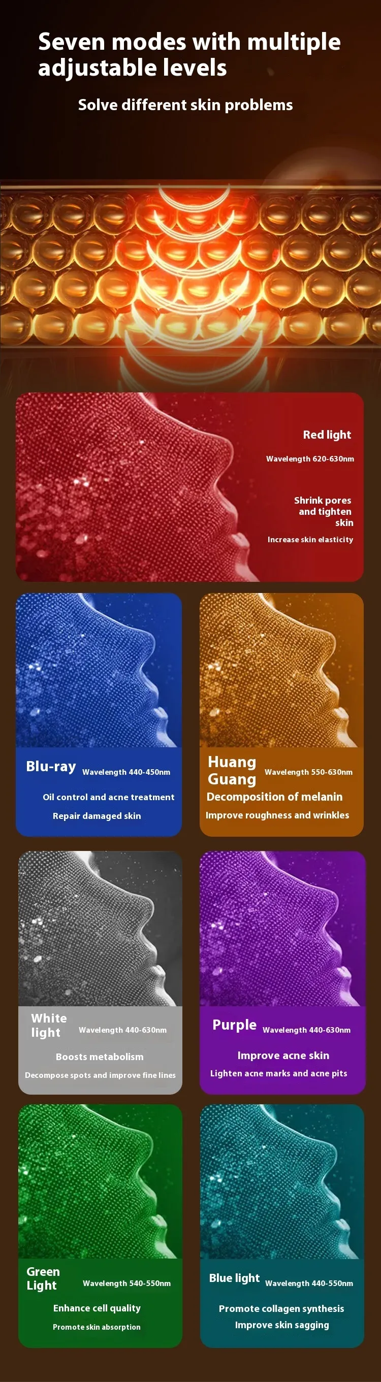 This beauty mask harnesses the power of photon therapy and LED lights to enhance your skincare routine. By emitting light waves at different wavelengths, each color penetrates your skin at varying depths, targeting specific skin issues. Whether you're aiming for skin rejuvenation, acne treatment, or improving your complexion, the mask can be tailored to suit your needs. Use it regularly to experience visible improvements in your skin's health and appearance.