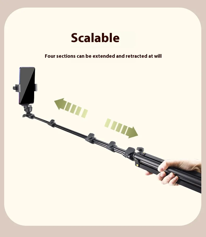Crafted from premium aluminum alloy, this selfie stick bracket is both lightweight and highly durable. The retractable design makes it easy to adjust the height and length according to your needs, while providing a stable platform for smartphones, cameras, or action cams. Its sturdy construction prevents wobbling, ensuring sharp and steady images even at full extension.