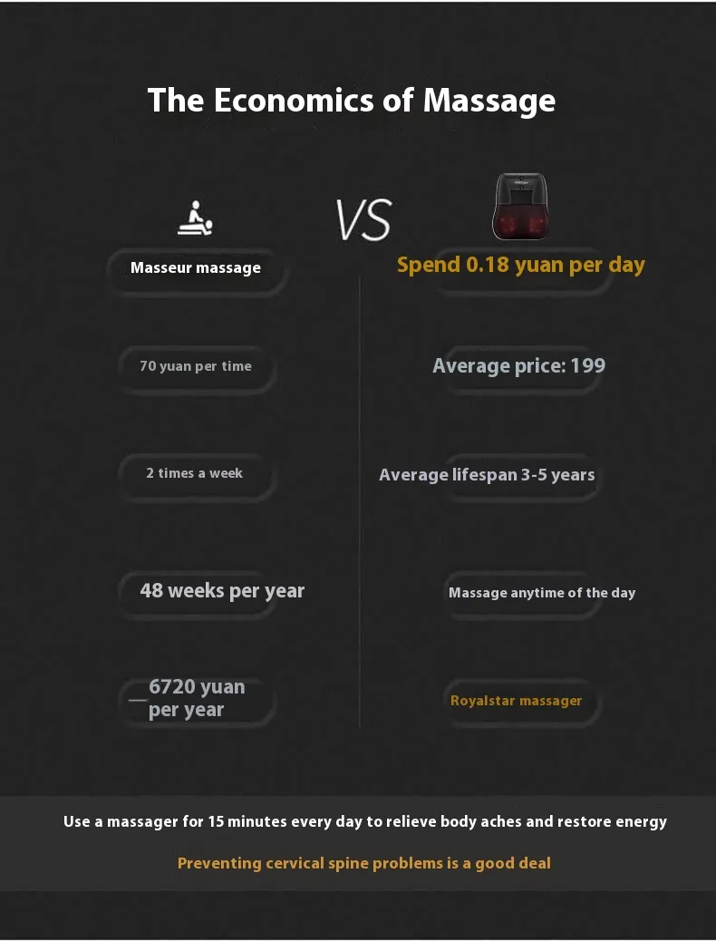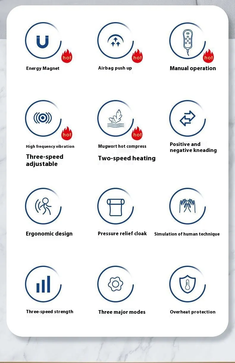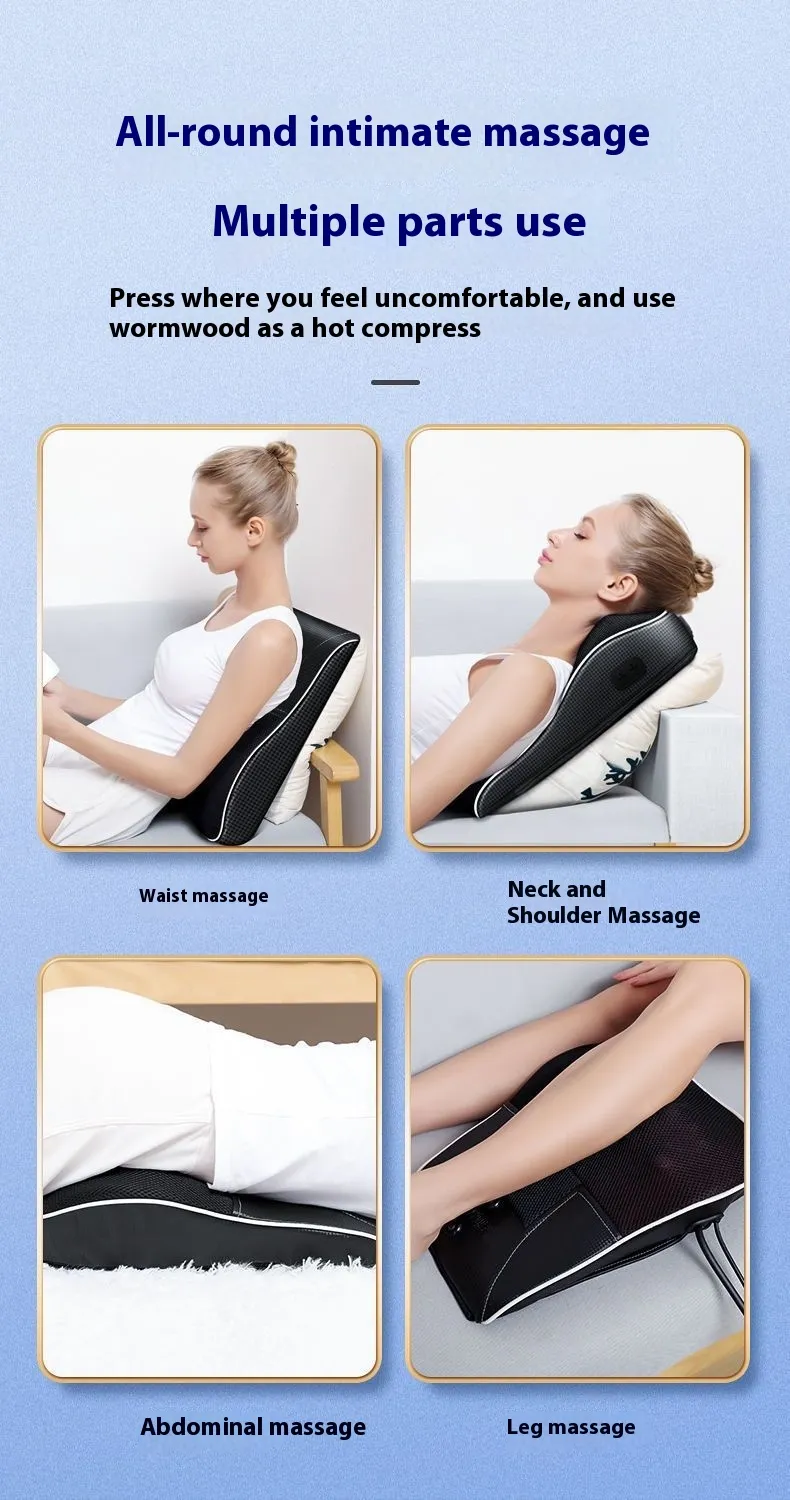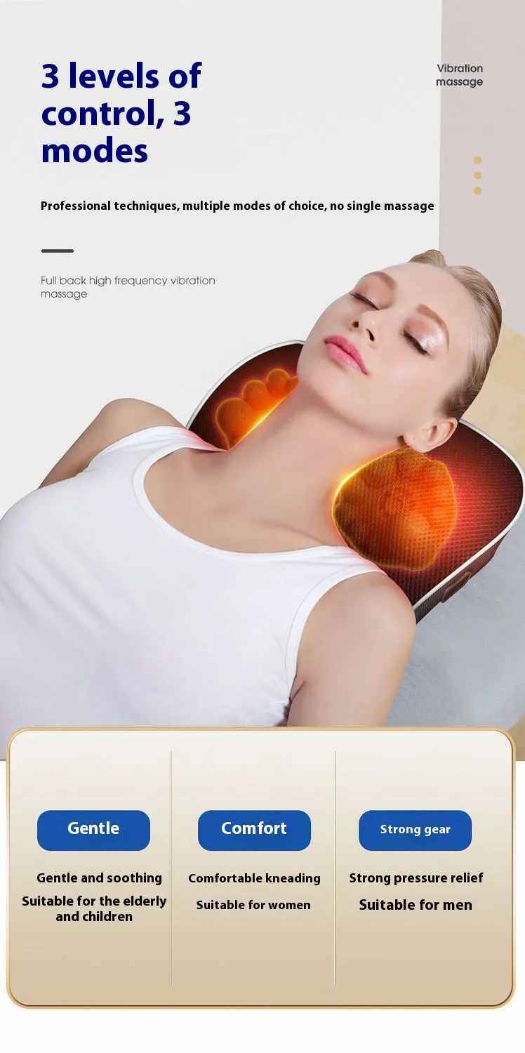 Equipped with intelligent massage nodes, heat functions, and adjustable intensity, this multifunctional pillow adapts to your needs. Its ergonomic design ensures optimal support while targeting specific muscle groups, mimicking the feel of a professional massage therapist. Easy-to-use controls allow you to customize massage modes, making it suitable for daily relaxation or post-workout recovery.