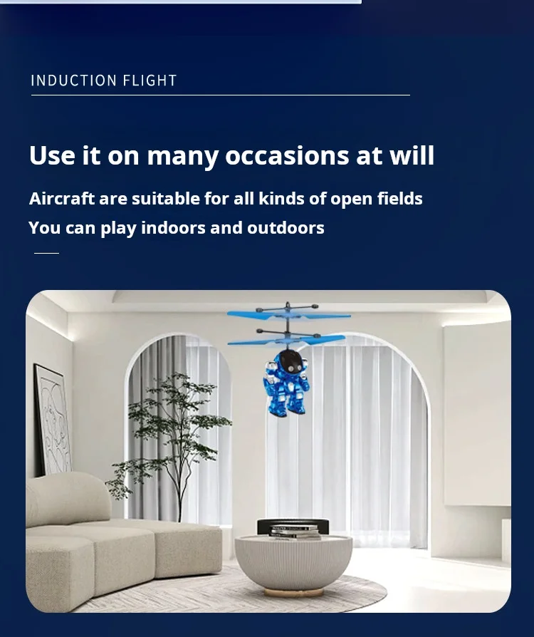 ✅ Gesture-Sensing Technology – Control the flying robot with your hands.