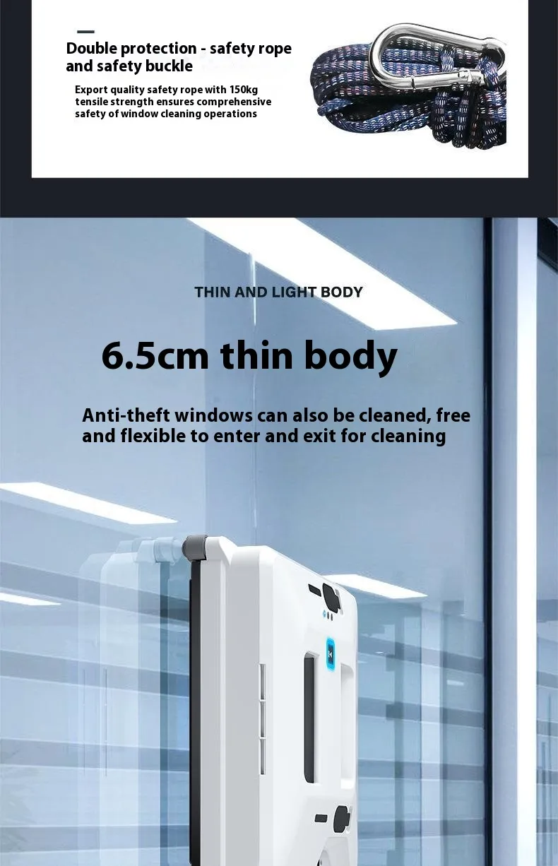 - Anti-Fall Safety System: Ensures the robot stays safe and secure, even on high or slippery windows.