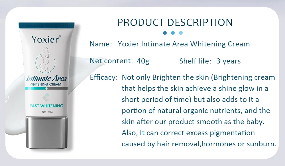 Formulated for use on intimate and sensitive areas of the body, this whitening cream is gentle and safe for all skin types. Its non-irritating, dermatologically tested formula ensures that it can be used daily without causing discomfort or harm to delicate skin. Whether you're using it on your armpits, elbows, or buttocks, this cream is designed to provide effective results without causing any irritation or sensitivity.