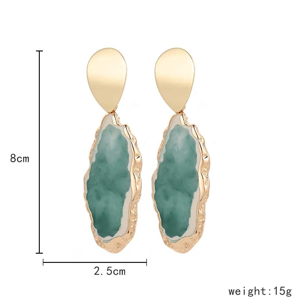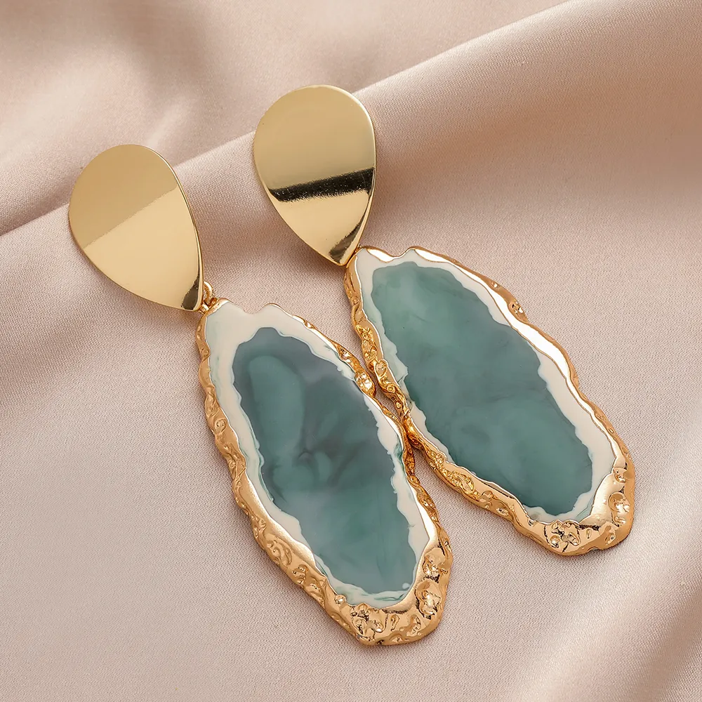 The Irregular Shaped Artificial Jade Stone Earrings are versatile enough to be worn for a wide range of occasions. Their understated elegance makes them perfect for casual wear, while their distinctive design also makes them suitable for more formal events or evening outings. Whether you're attending a dinner, wedding, or just a day out with friends, these earrings add a sophisticated touch to your ensemble.Their unique design ensures they stand out as a statement piece, while their natural-inspired colors and minimalist design allow them to be paired with a variety of other jewelry pieces. Wear them with a simple necklace or bracelet for a coordinated, balanced look.
