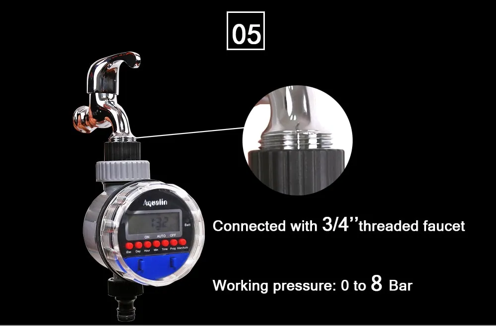Water Conservation: By automating your irrigation system, the timer ensures that water is used efficiently, only when