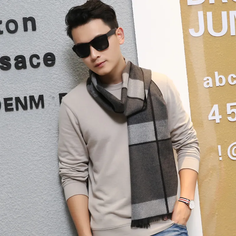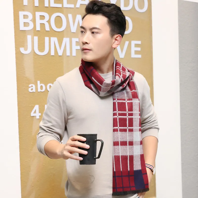 jacquard Plaid Dad Grandpa Scarf For Warmth