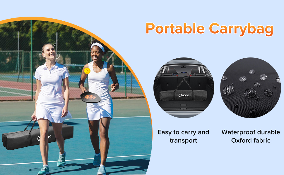 be assembled in minutes, making it ideal for spontaneous play. When you're done, the net set can be packed up and stored in the convenient