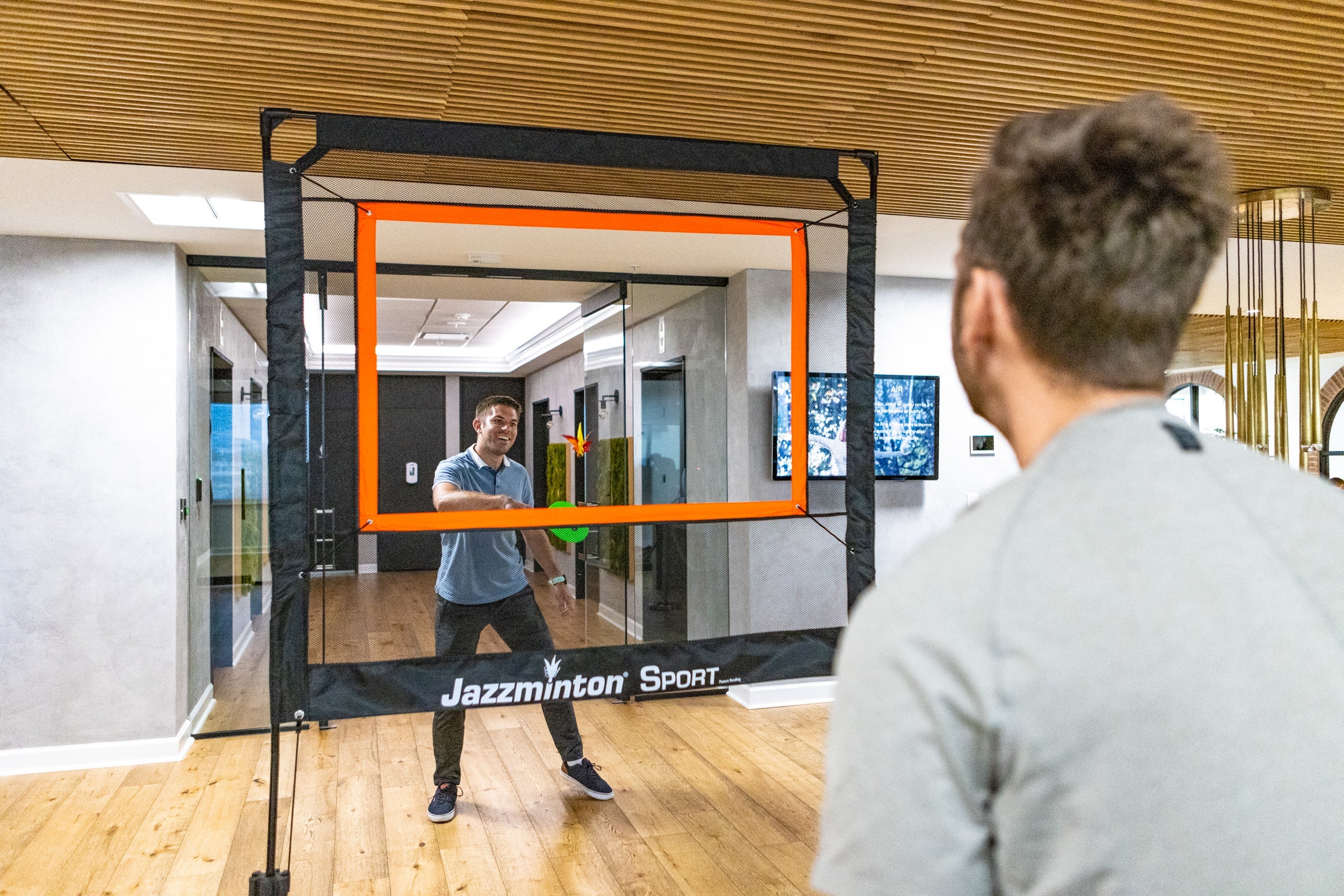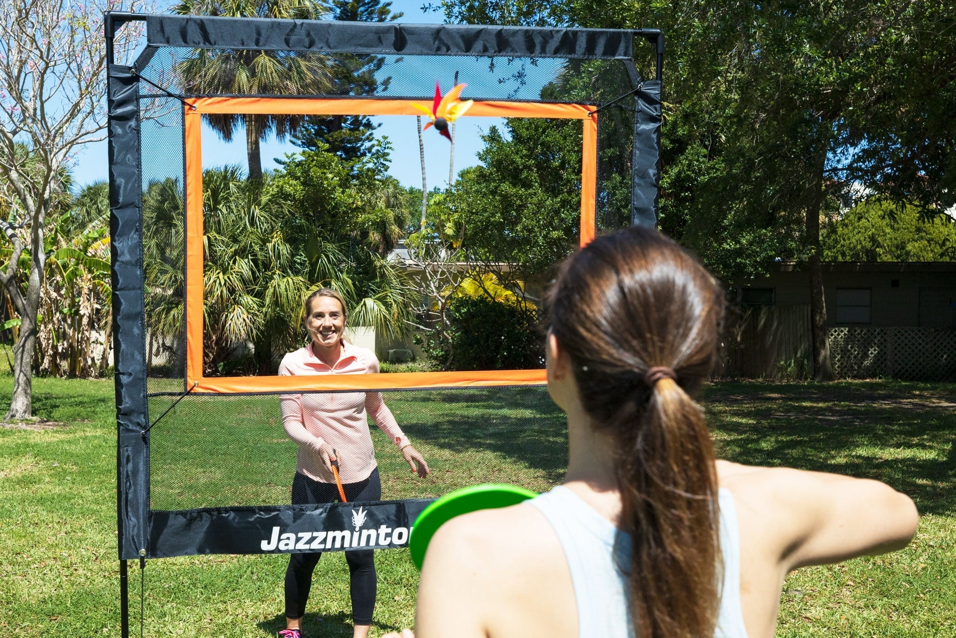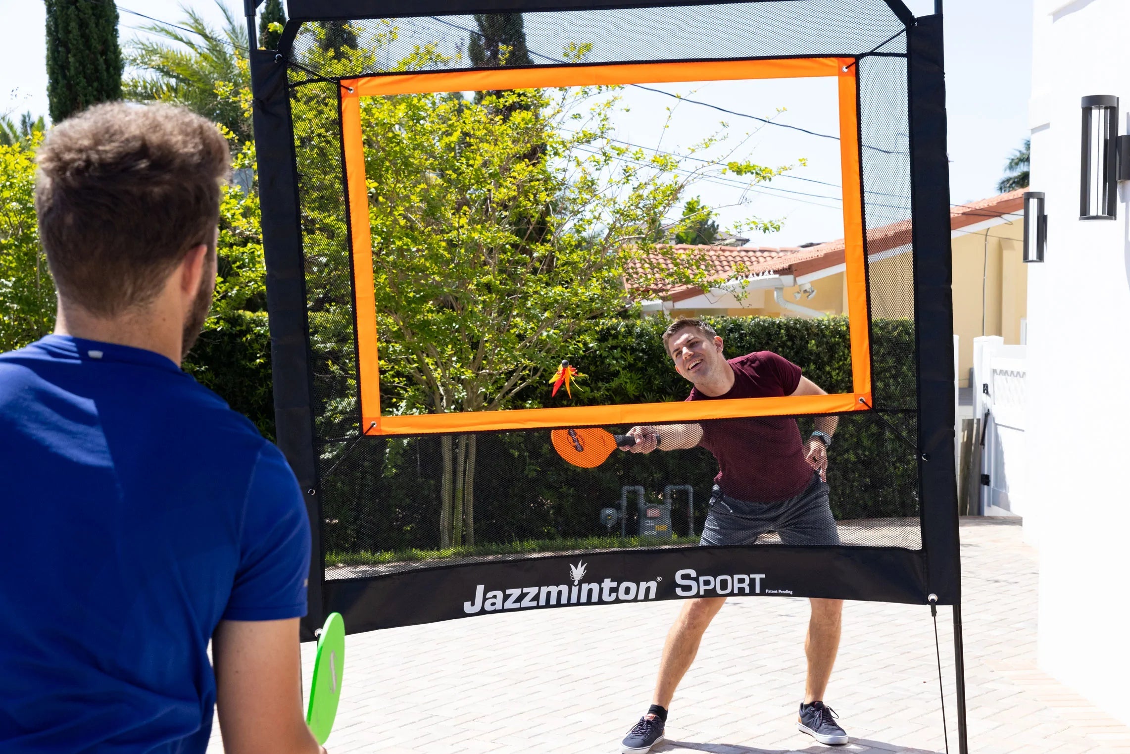 - LONG RALLIES FOR ALL AGES: We purposely constructed Jazzminton Sport to be played WITHOUT boundaries. You can hit the birdie as hard as you want, we’ve created it so it can’t fly too far where it's out of reach. Even the hardest hits are playable. Think professional badminton where the rallies can be crazy!