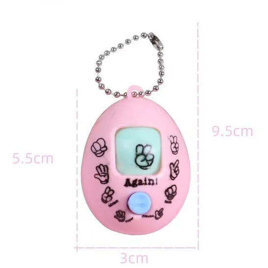 This capsule toy keychain works by simply pressing a button, which rotates the toy’s face to reveal different hand gestures—rock, paper, or scissors. It functions like a mini game that can be played solo or with friends, making it a fun, decision-making tool or a quirky collectible.
