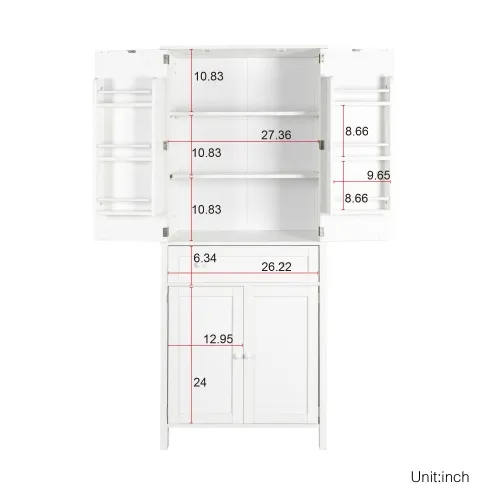- Overall Dimension 29.53"W* 15.75"D * 70.87"H,This pantry cabinet offers ample visible and hidden storage, tidying kitchen clutter. Perfect for kitchen supplies, snacks, and coffee machine