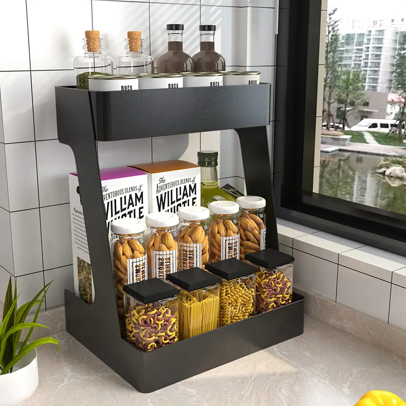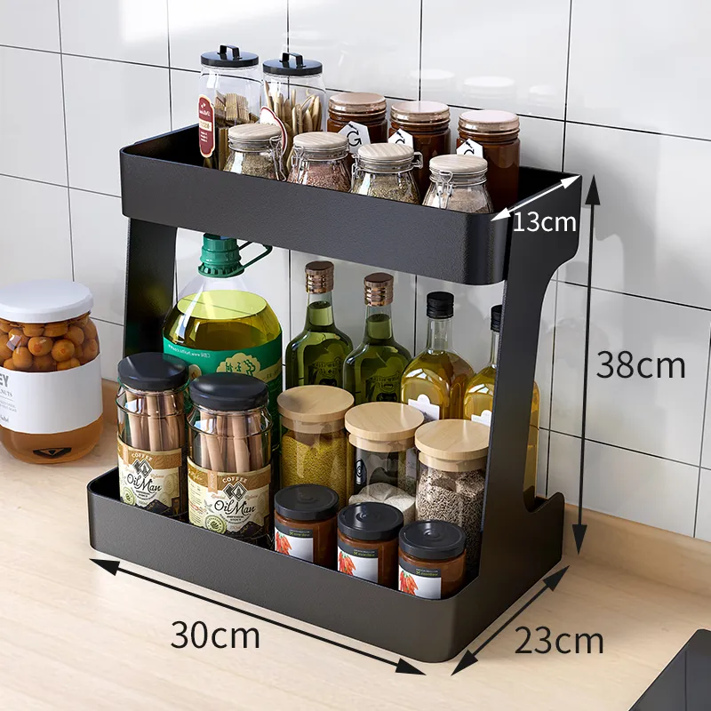 With the Kitchen Shelf Countertop Double-Layer Household Multifunctional, you can easily access your kitchen essentials without the hassle of digging through cluttered cabinets or drawers. The open design and tiered storage structure allow you to quickly find and grab the items you need while cooking, making meal prep more efficient and less stressful.