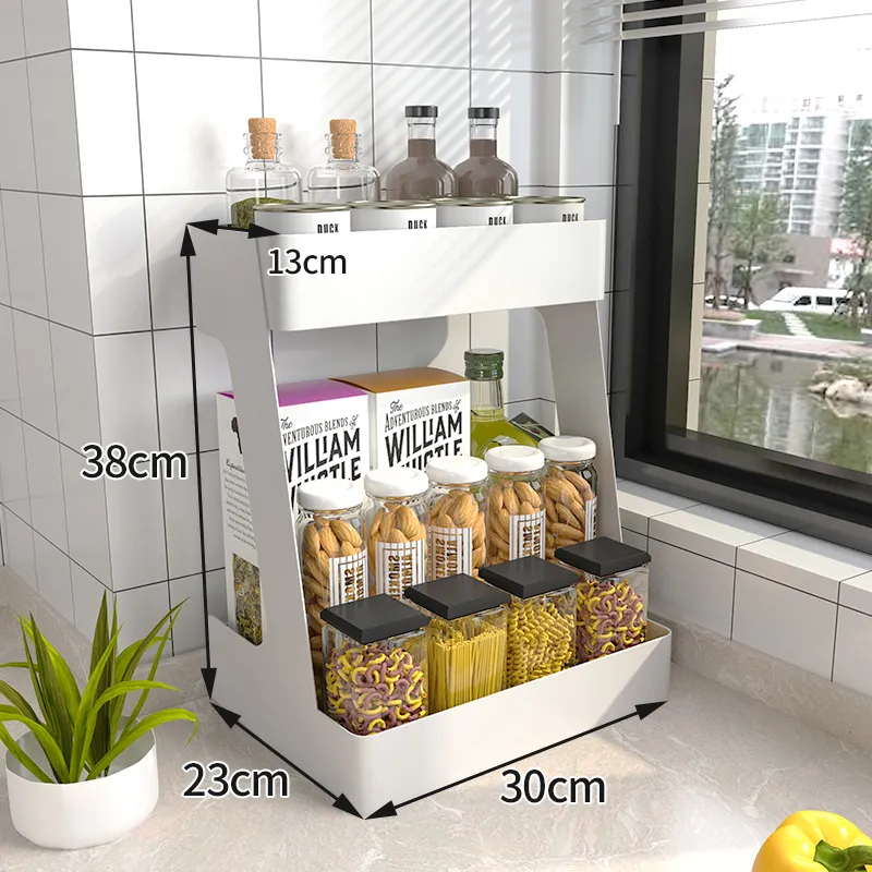 With the Kitchen Shelf Countertop Double-Layer Household Multifunctional, you can easily access your kitchen essentials without the hassle of digging through cluttered cabinets or drawers. The open design and tiered storage structure allow you to quickly find and grab the items you need while cooking, making meal prep more efficient and less stressful.