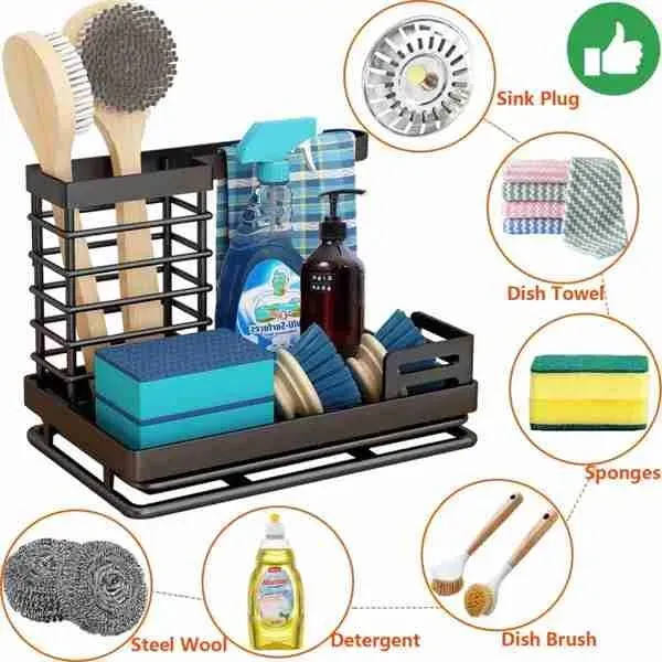 Organized Storage: The kitchen sink caddy provides space for sponges, brushes, dish soap, and more, keeping everything