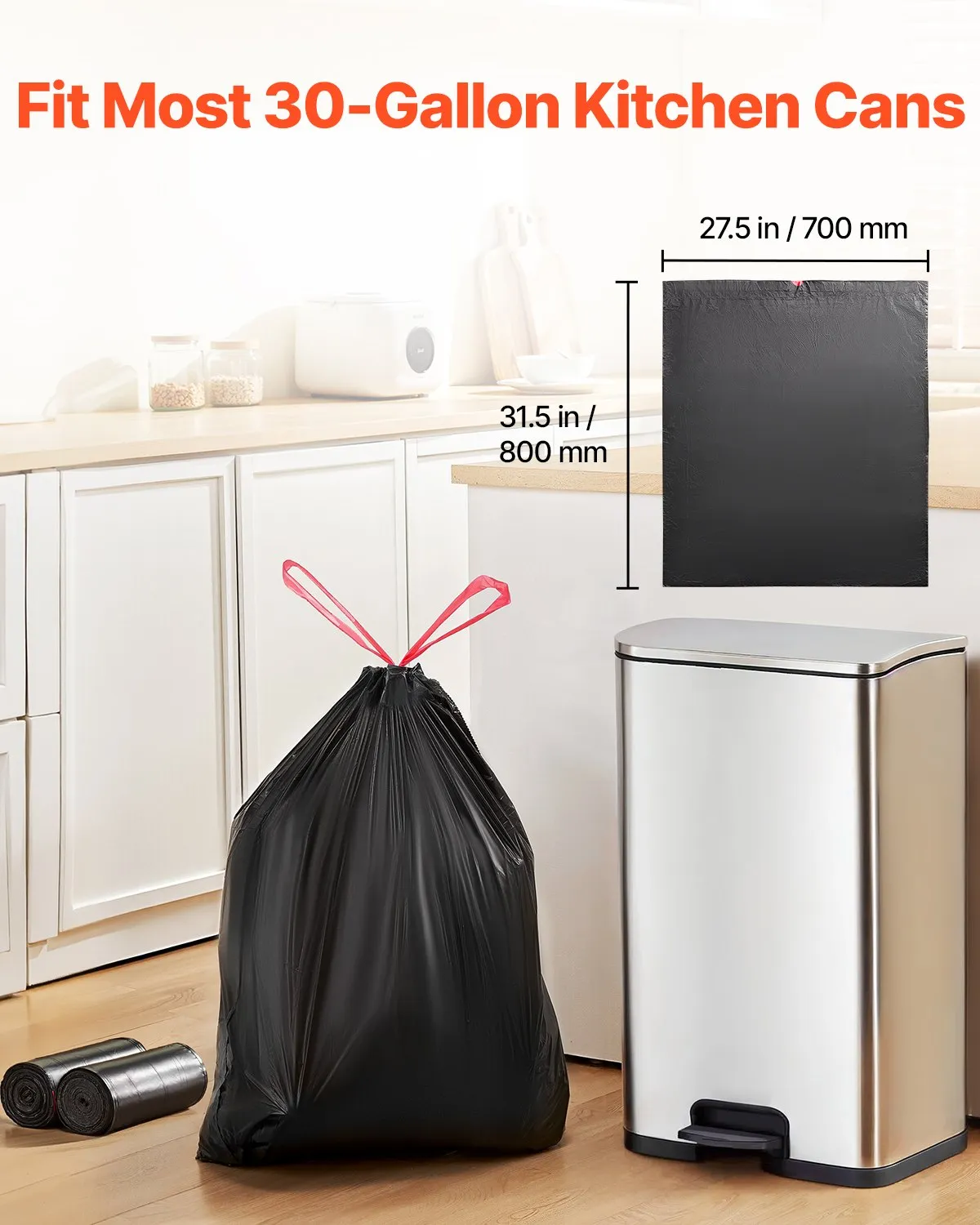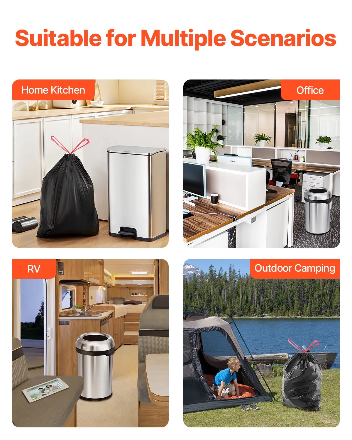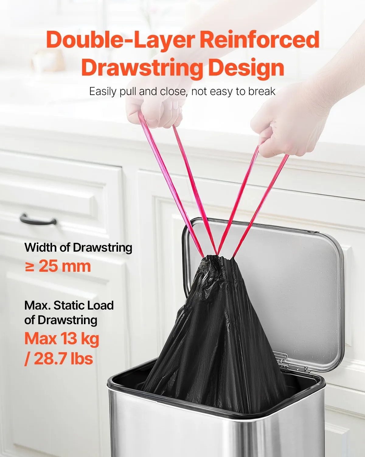 Features drawstring or tie-handle closures, allowing you to seal, lift, and dispose of trash easily.