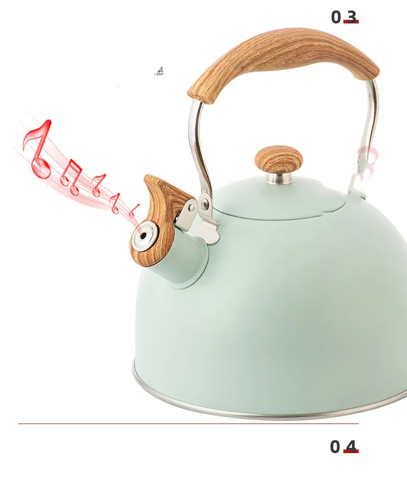 The New Green Whistling Kettle stands out with its vibrant green color, bringing a fresh and lively feel to your kitchen. The glossy finish complements various kitchen styles, from modern minimalist to traditional setups. Its design adds a splash of color to your countertop and makes boiling water a more enjoyable experience.