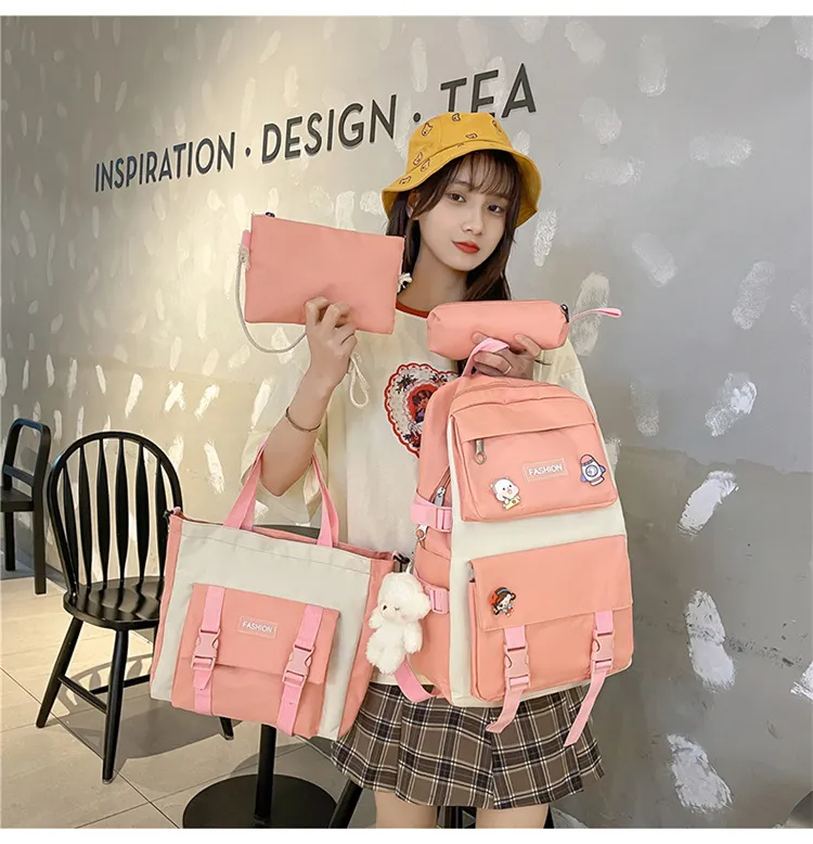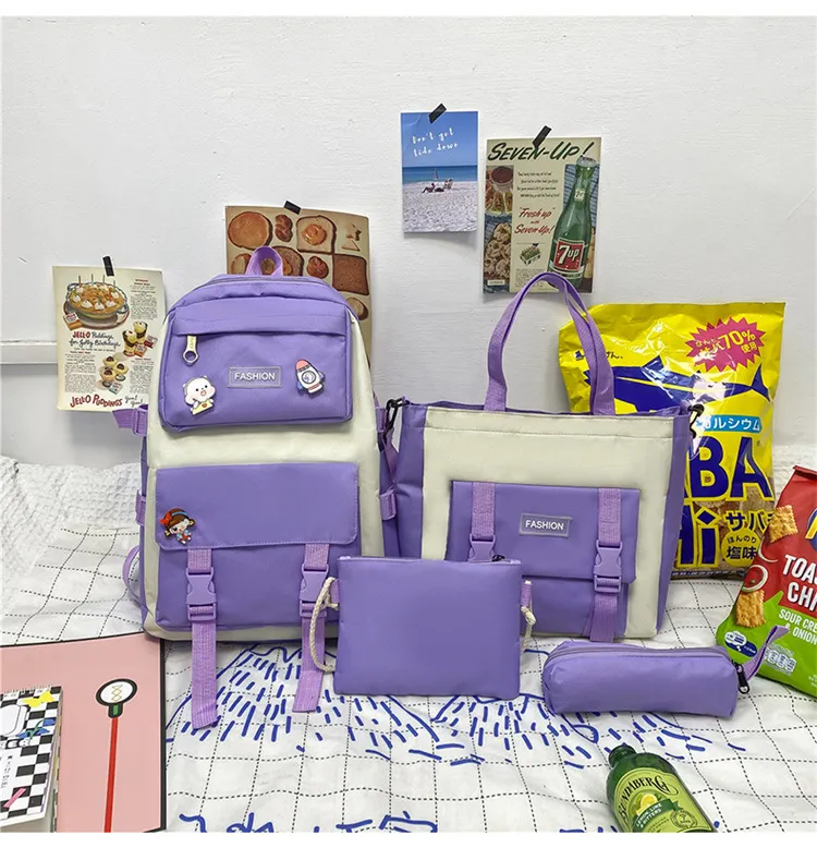 Korean Style Mori Casual Oxford Cloth Student Four-piece Set Backpack