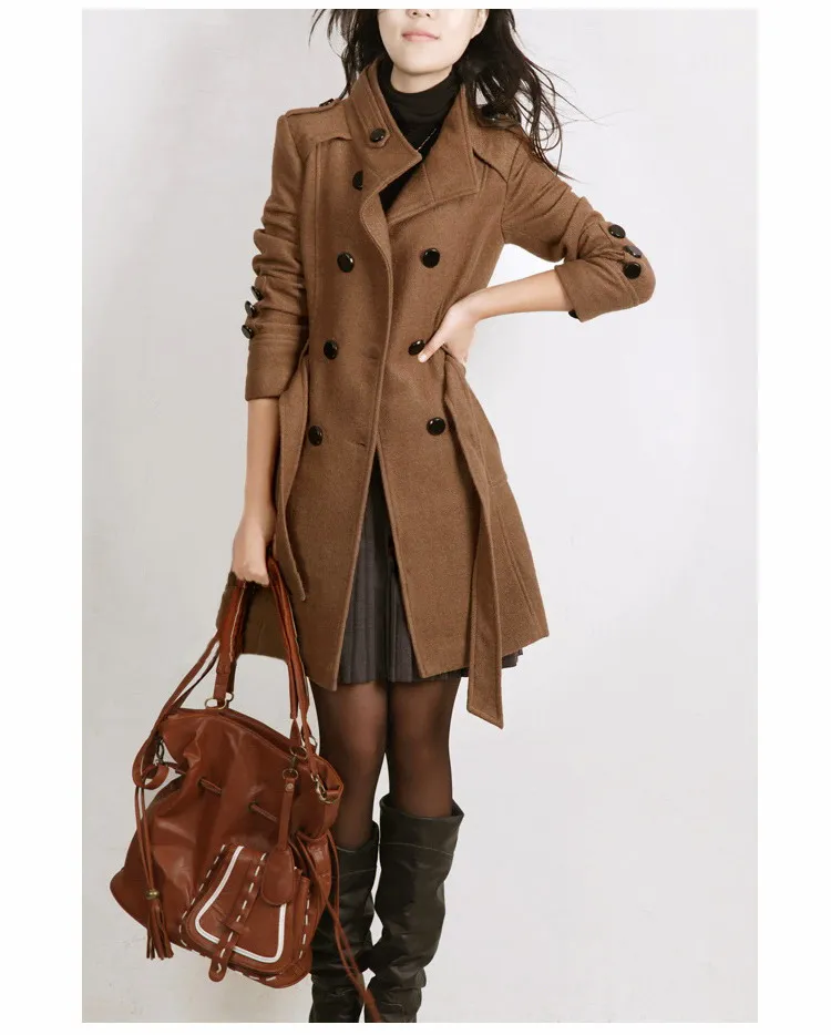 Korean Style Slim Waist Plus Size Woolen Mid-length Woolen Coat