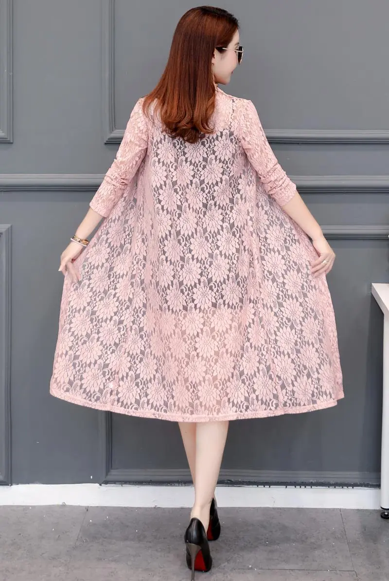 Lace Cardigan Mid-length Mesh Shawl Outer Match Loose Overknee Sun Protection Clothing Women's Coat