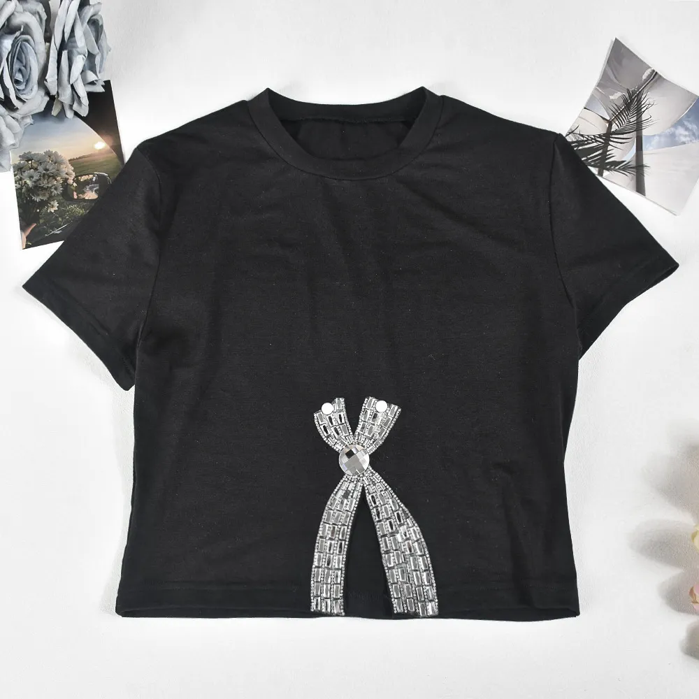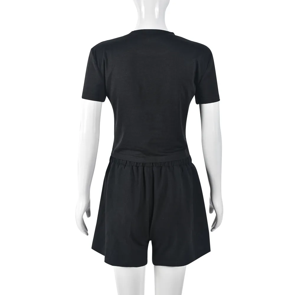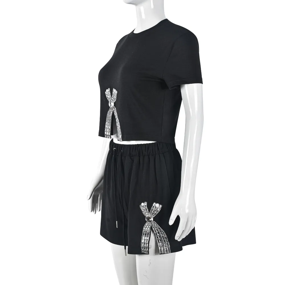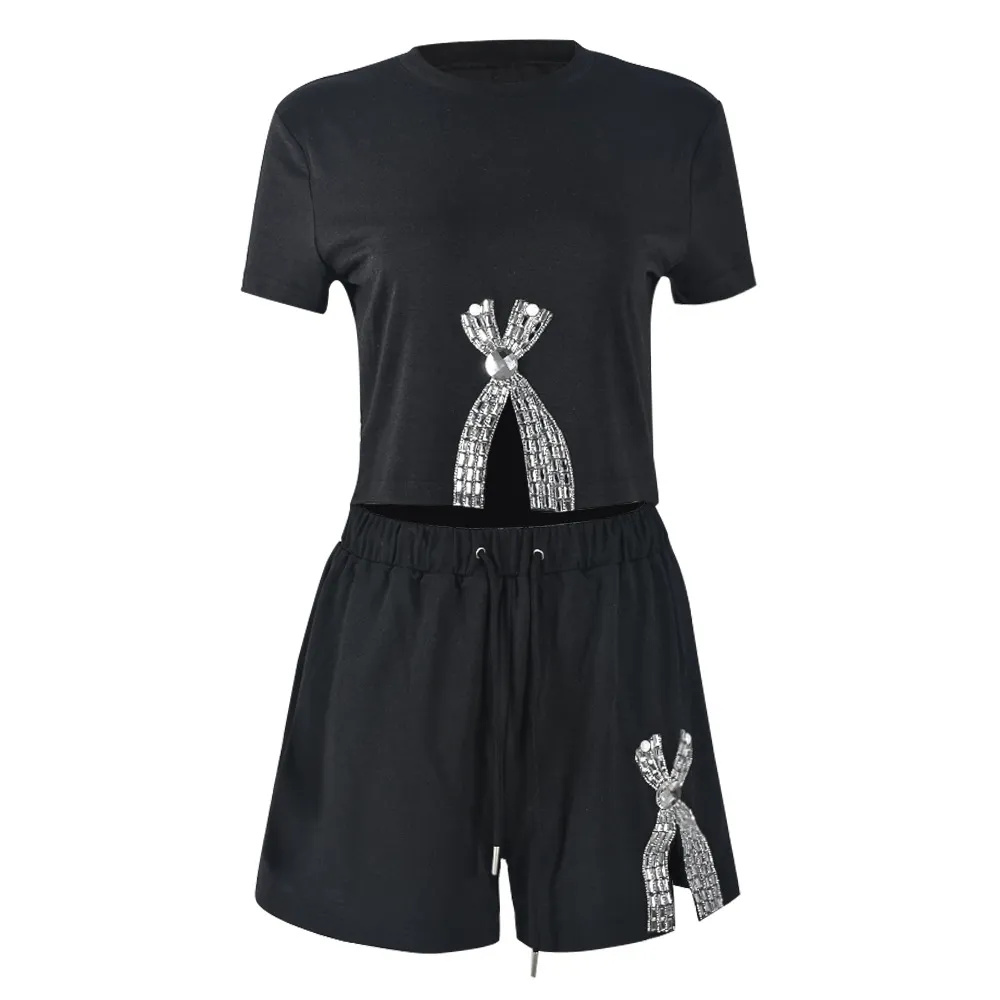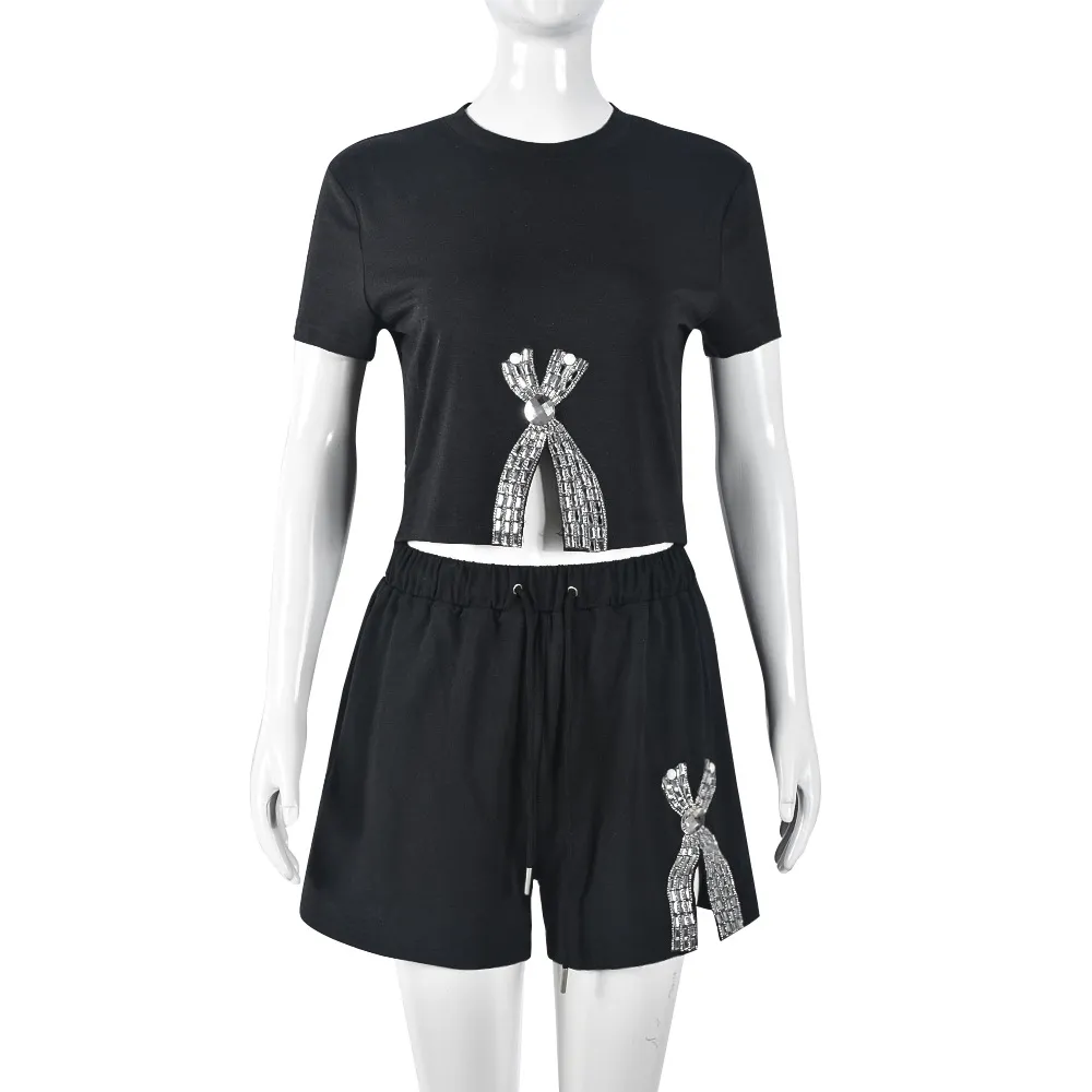 Lace-up Rhinestone Round Neck European And American Shorts Suit