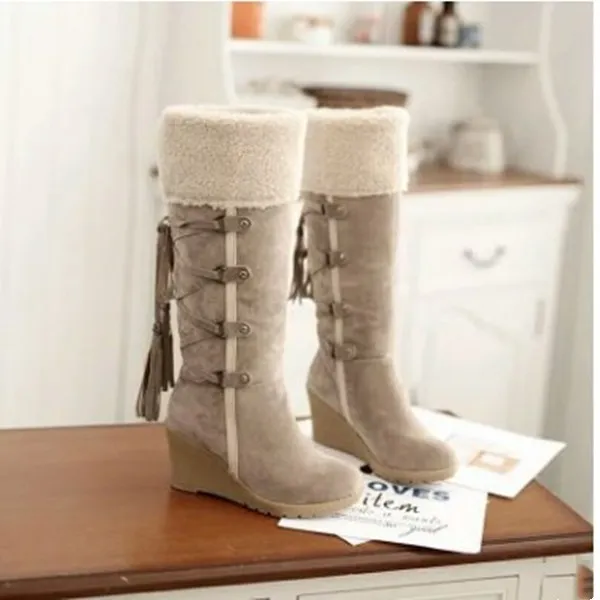 Lace-Up Wedge Boots Knee-High – Stylish, Comfortable, and Trendy Footwear
