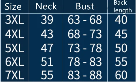 Size: 3 xl, 4 xl, 5 xl, 6 xl, 7 xl