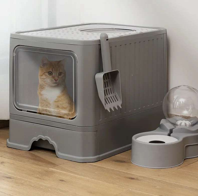 and convenience, allowing your cat to enter and exit with ease. Its drawer design ensures simple, hassle-free cleaning, while the foldable