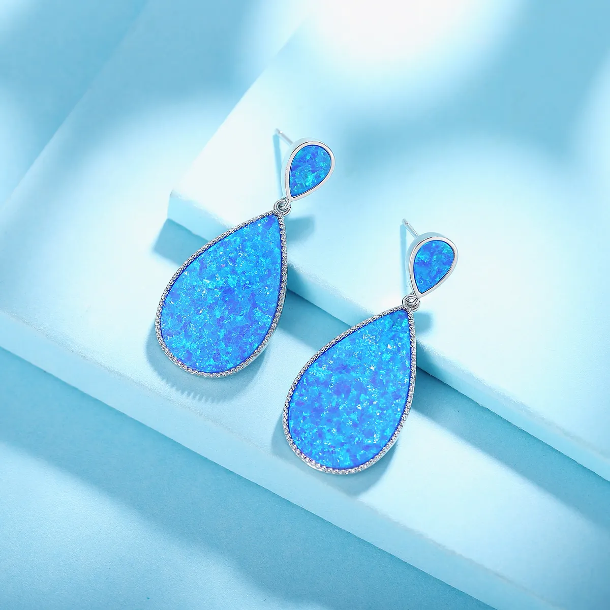 Key Features of the Large Stone Drop Shape Opal Sterling Silver Earrings