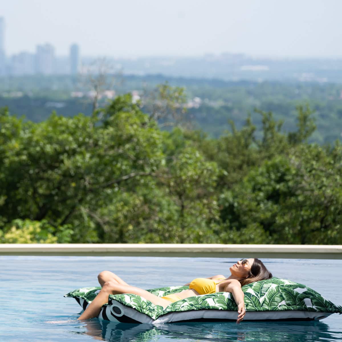 Getting the best of both worlds in your backyard is now a breeze. With our one-of-a-kind floating pool pillow, you can skip the hassle of an