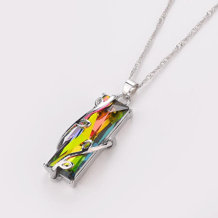 Leaf square stained glass crystal crystal necklace