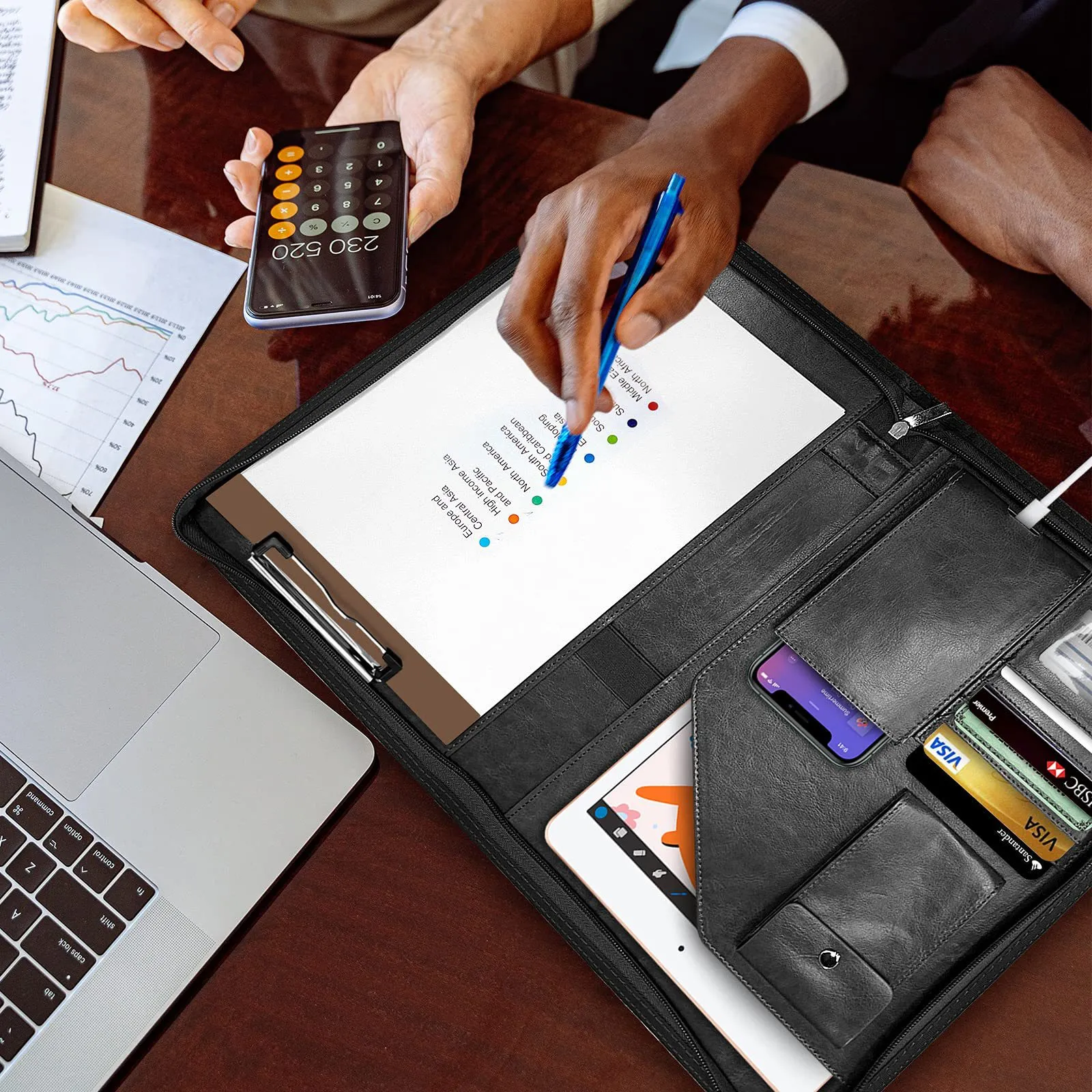 A well-designed leather zip folder should be compact enough to carry easily but spacious enough to hold all your essentials. Look for a folder that provides enough space for A4-sized documents and additional items without being overly bulky.