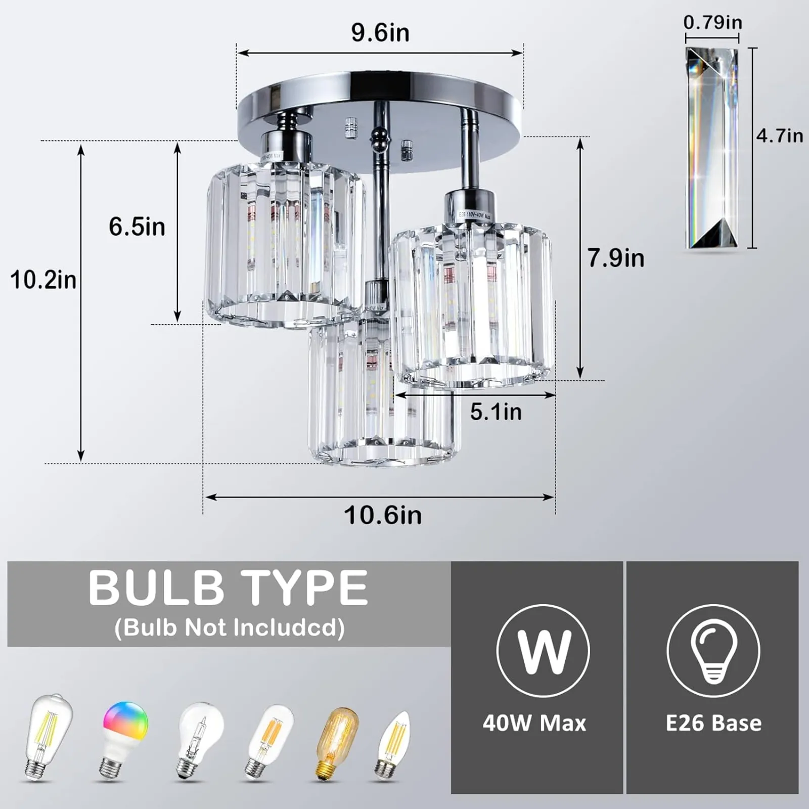 - 【Gorgeous and Beautiful】This kitchen light fixtures ceiling is different from the traditional glass shade design, replaced by a crystal shade, the ceiling light fixtures reflect bright light, energize your space and create an elegant and luxurious atmosphere.