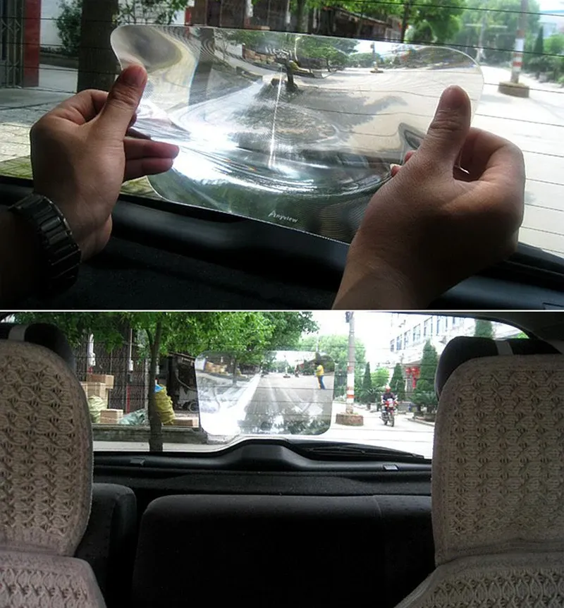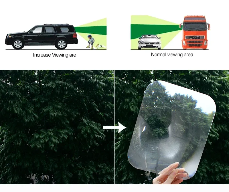 vehicle while backing up. The lens can also be applied on a side window for larger vehicles to aviod squeeze accidents.