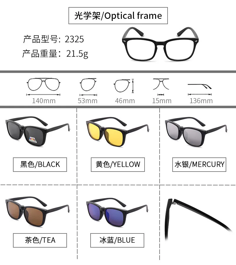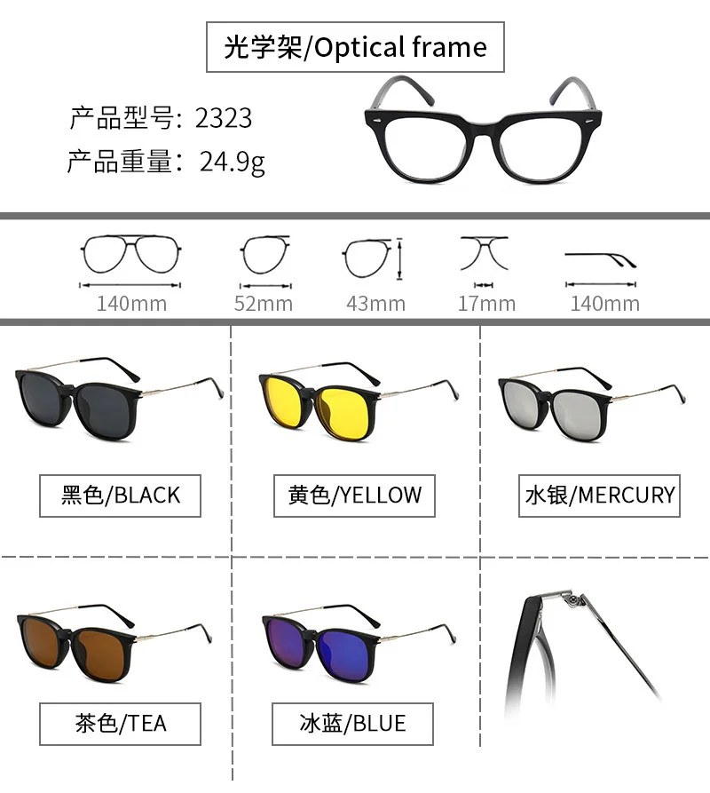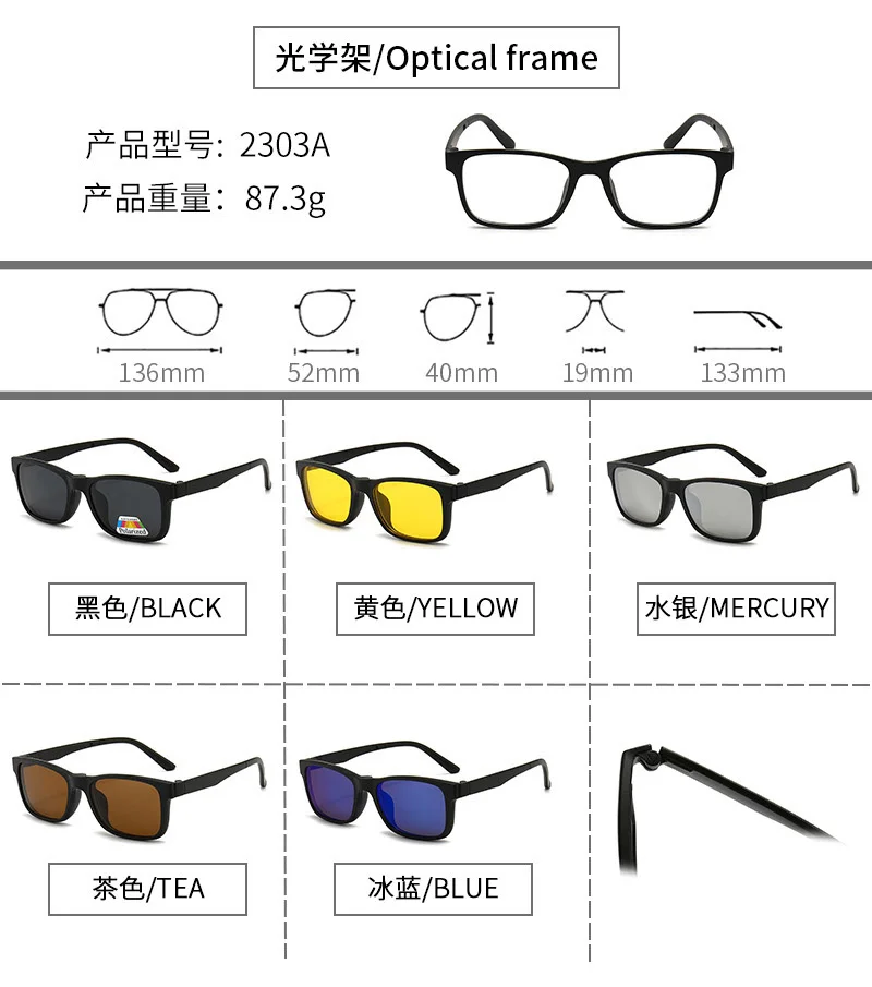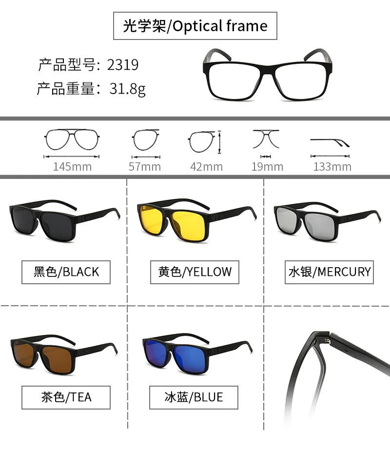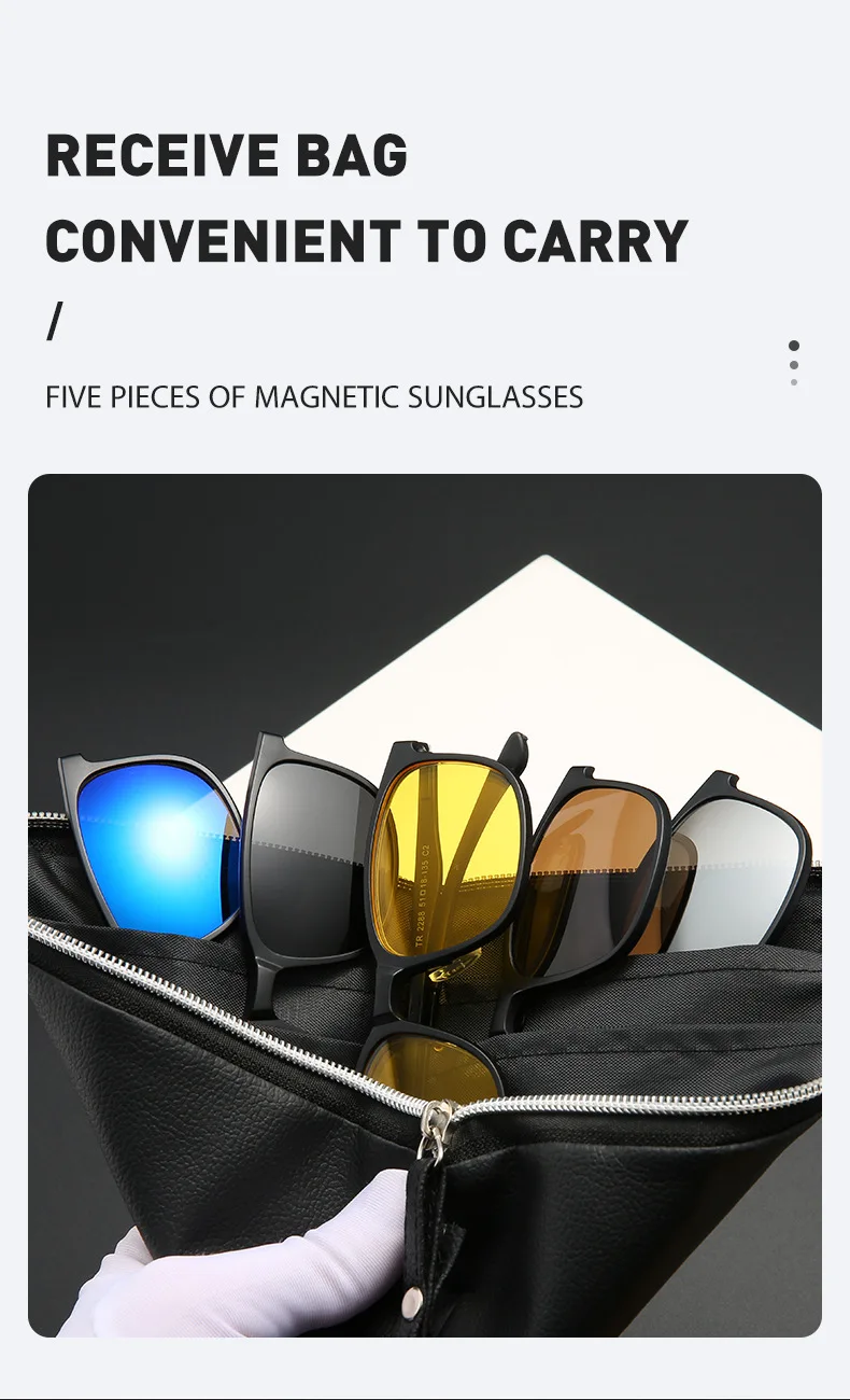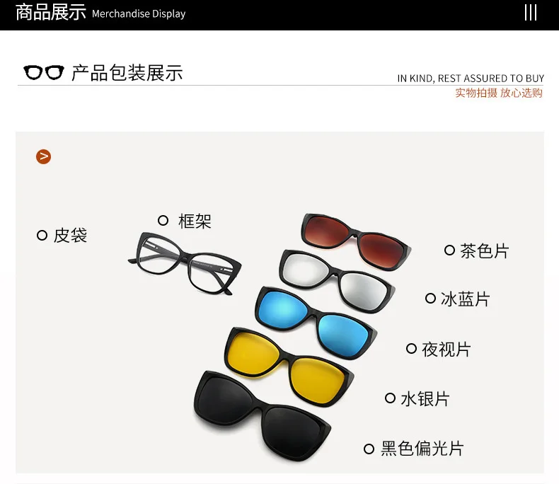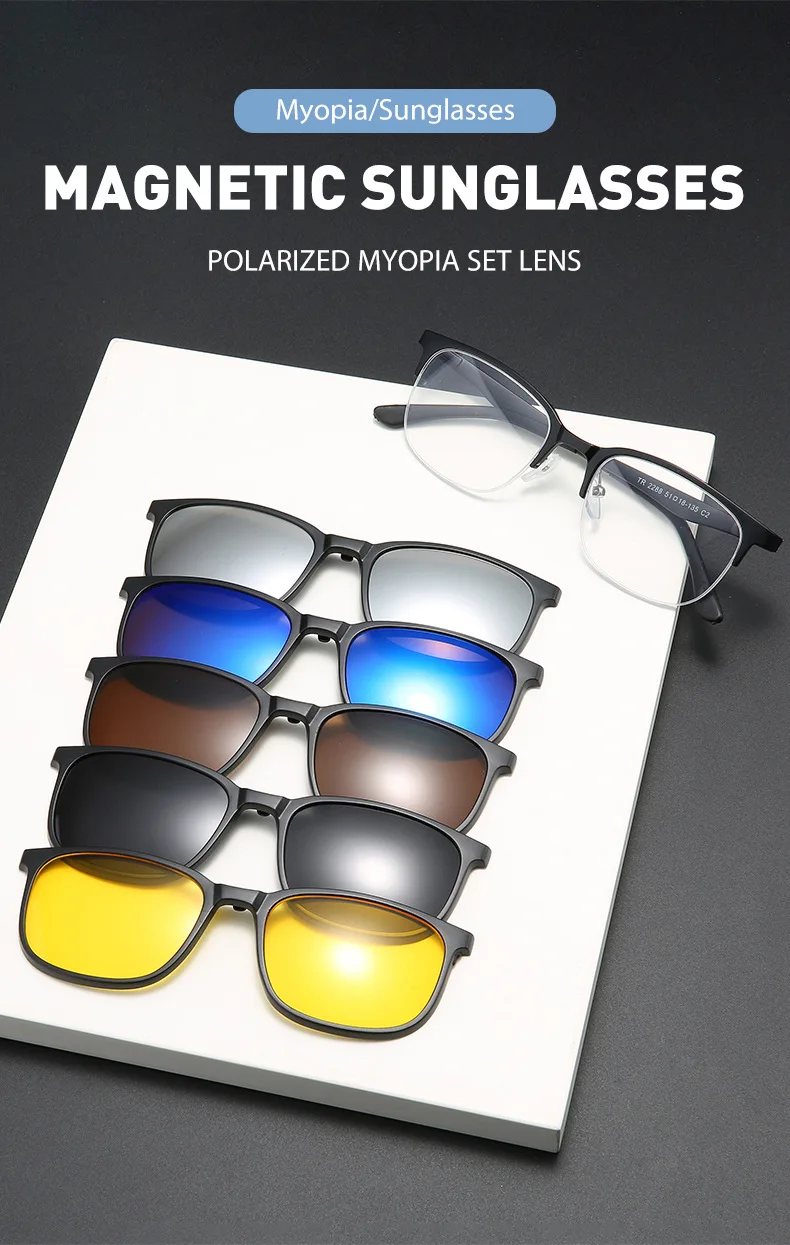 Lenses Color: Beige, Ships From: CHINA, Frame Color: WHITE - 6 In 1 Magnetic Clip Sunglasses And Prescription Glasses Frame Men Women Polarized or Night Vision Lenses PC or TR90 Frame 2333