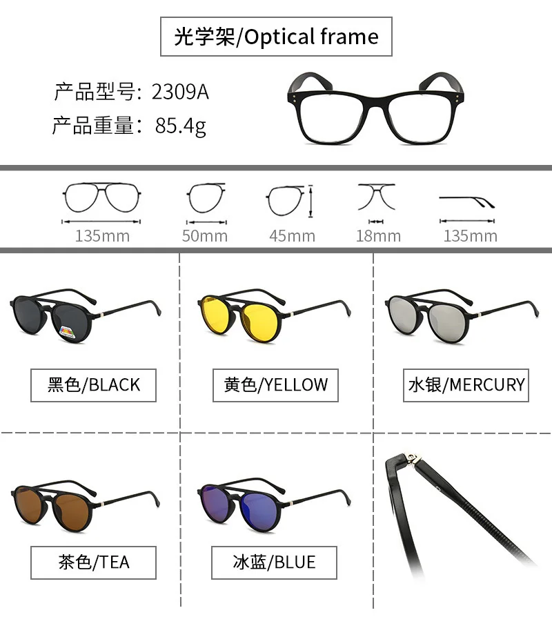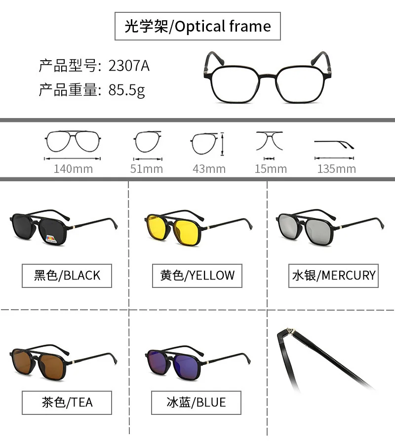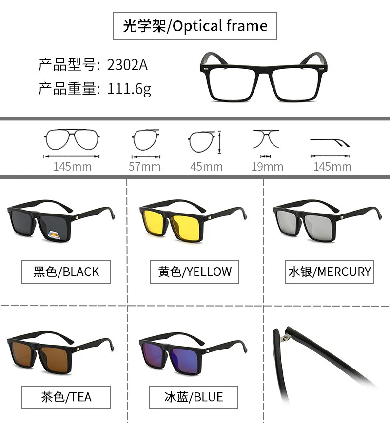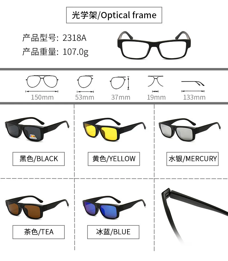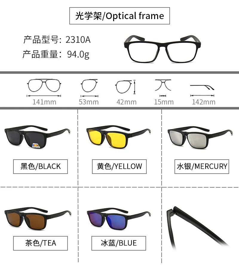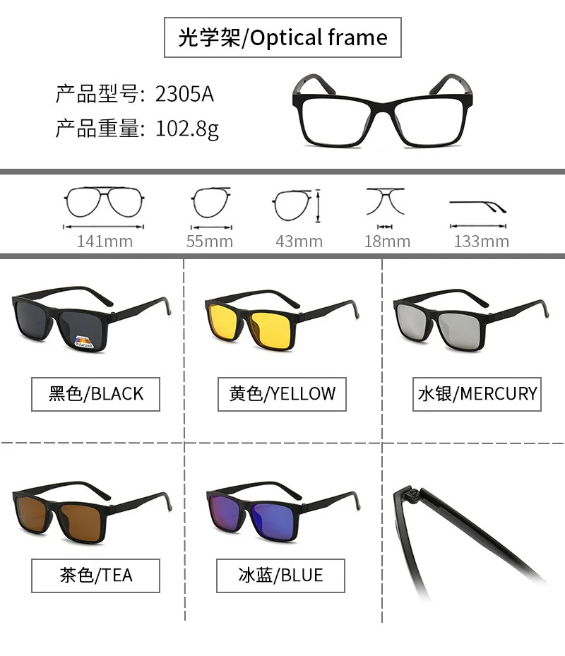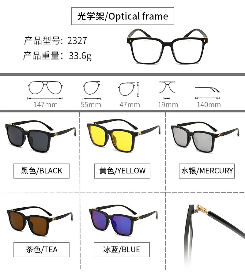 Lenses Color: Beige, Ships From: CHINA, Frame Color: WHITE - 6 In 1 Magnetic Clip Sunglasses And Prescription Glasses Frame Men Women Polarized or Night Vision Lenses PC or TR90 Frame 2333