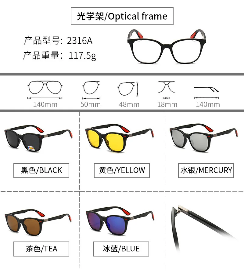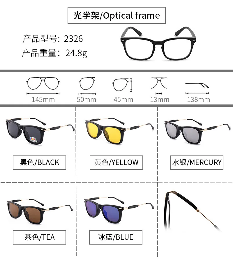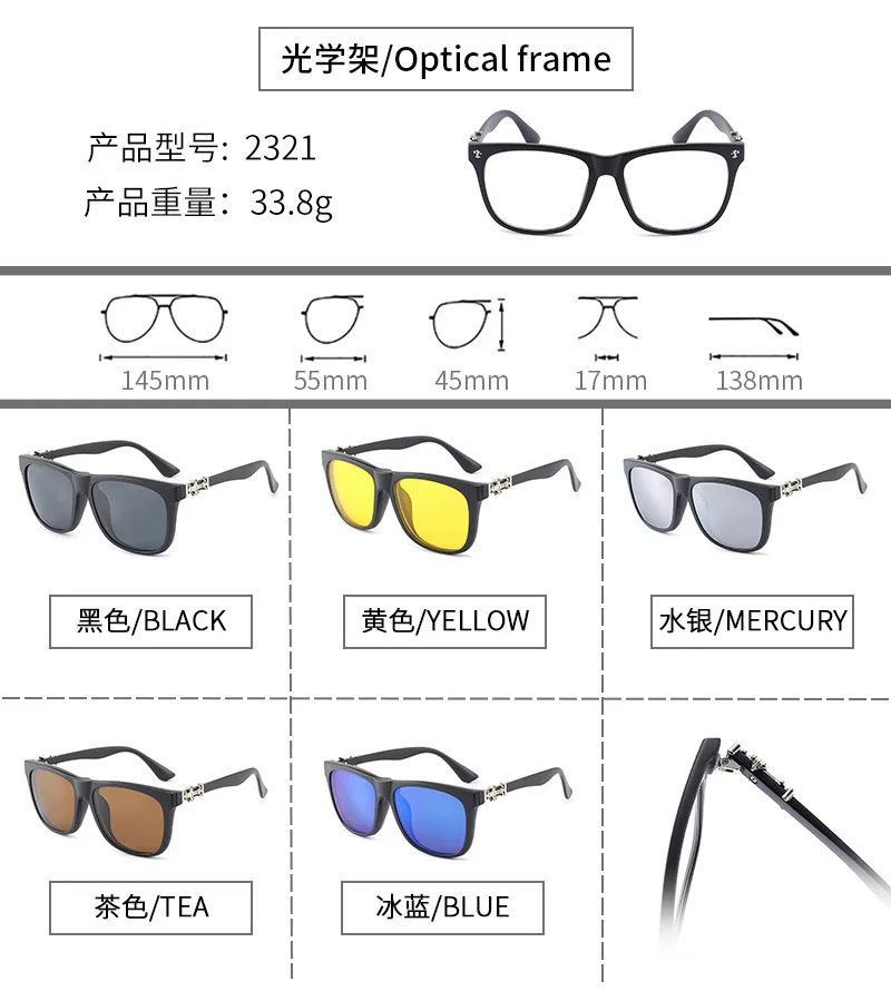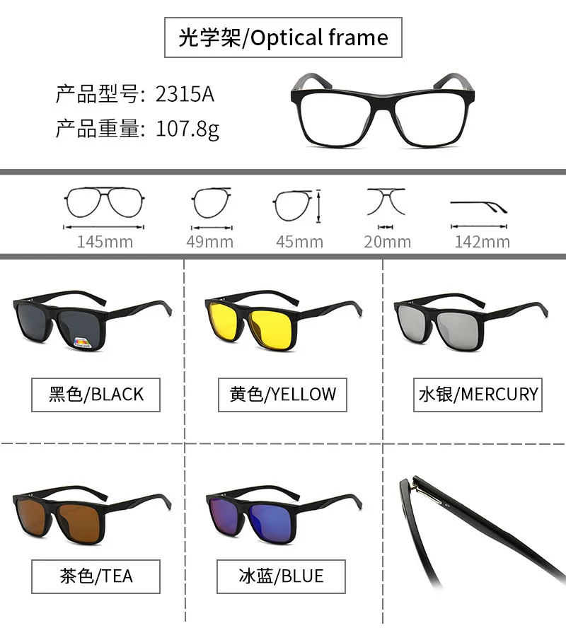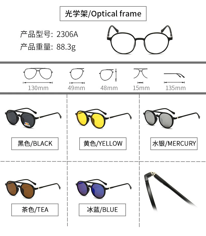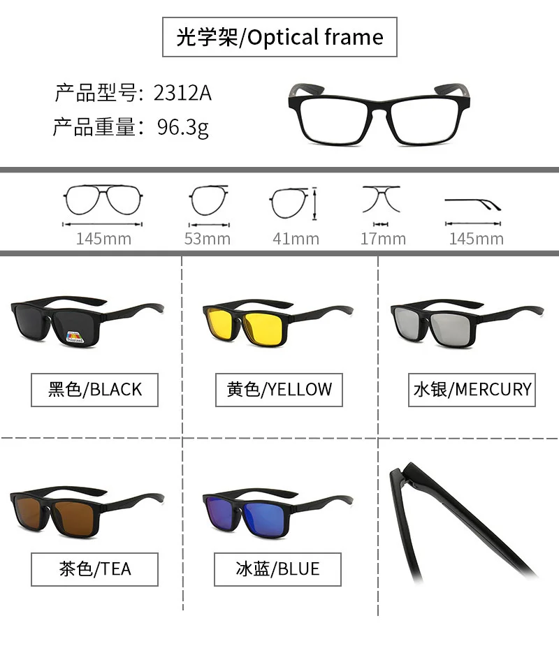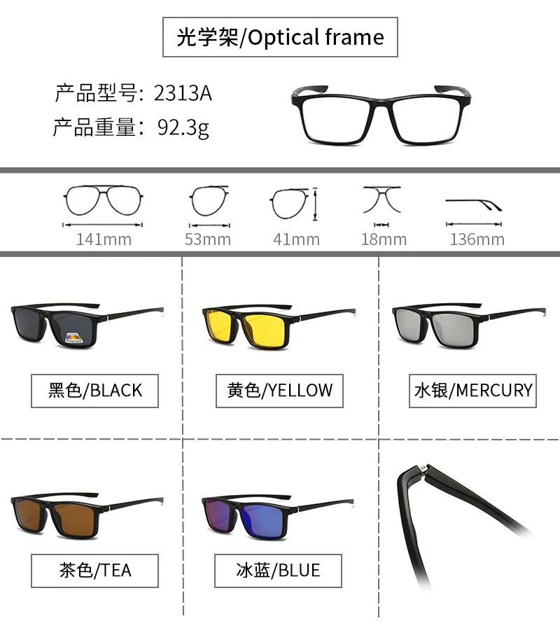 Lenses Color: Beige, Ships From: CHINA, Frame Color: WHITE - 6 In 1 Magnetic Clip Sunglasses And Prescription Glasses Frame Men Women Polarized or Night Vision Lenses PC or TR90 Frame 2333