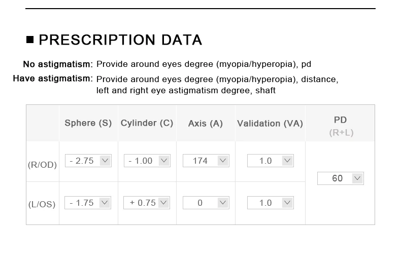 SPH: -0.50 ~ -6.00;CYL: -0.50~-2.00
