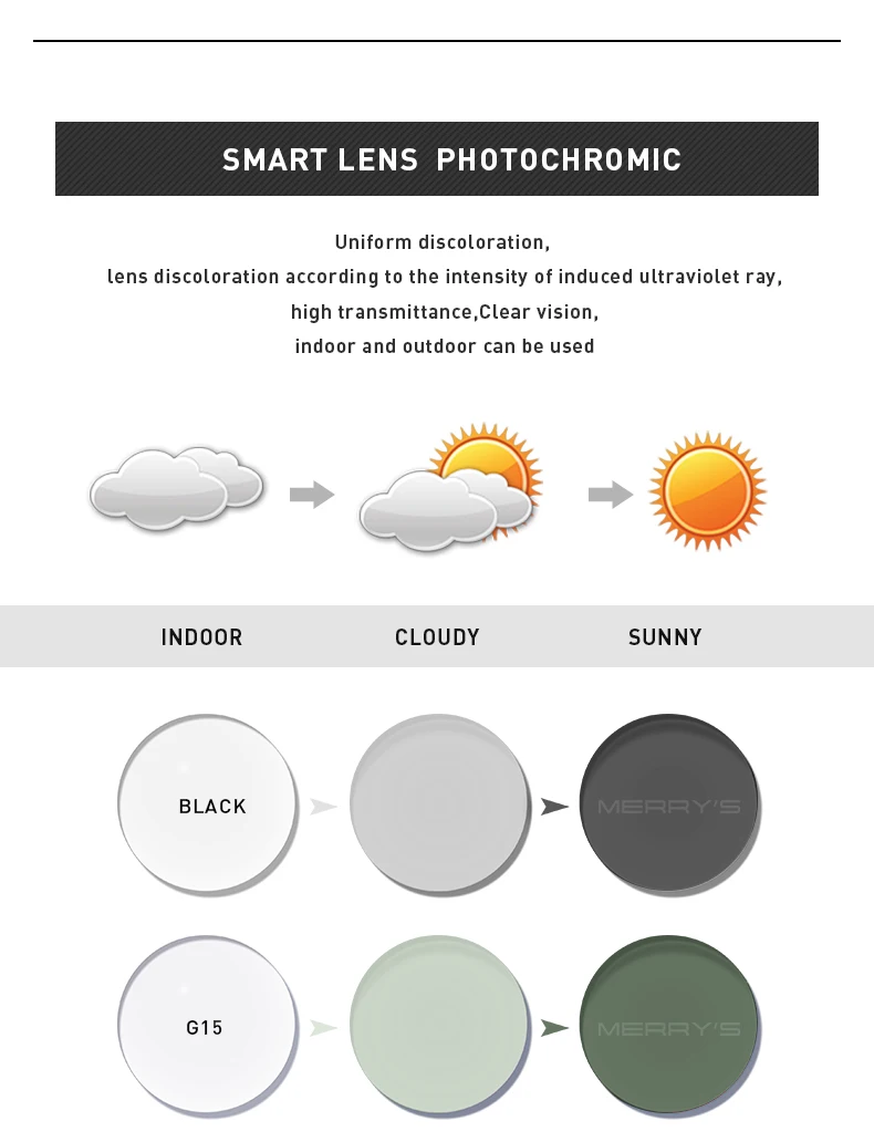 Lenses Color: Blue, Lens Index: 1.56 - MERRYS Photochromic Gray Green Brown Pink Purple Blue Series 1.56 1.61 1.67 Prescription Glasses Lenses For Myopia Hyperopia