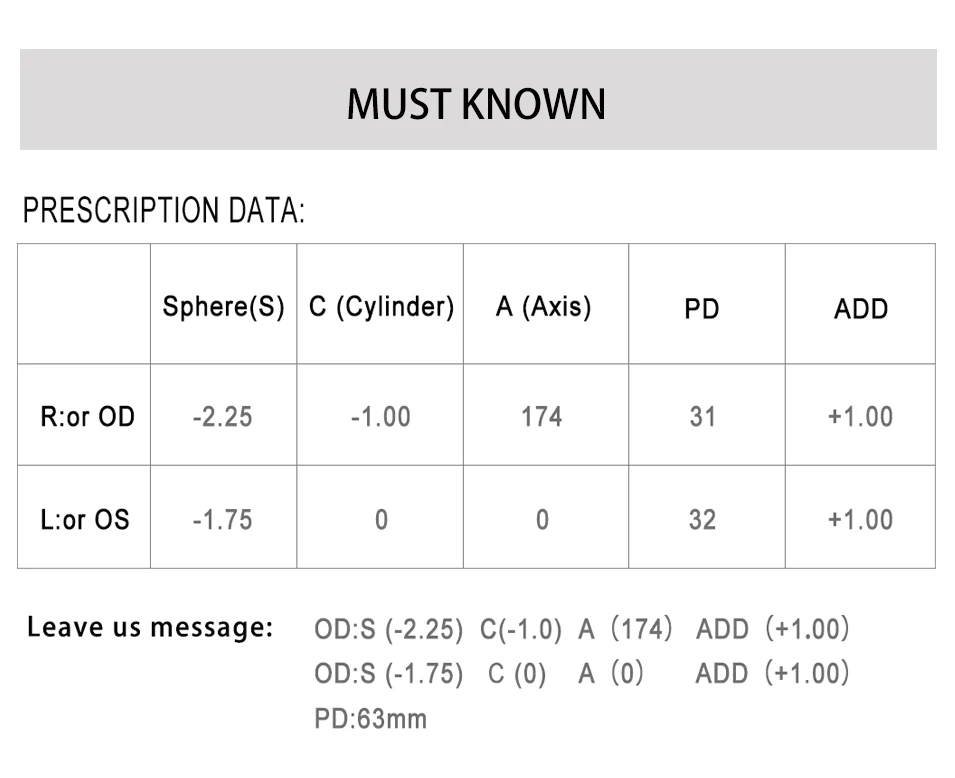 SPH: +0.50~+4.00;CYL:+0.50~+2.00