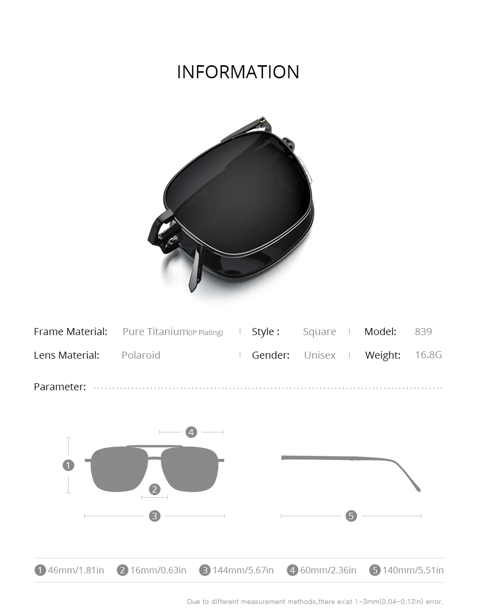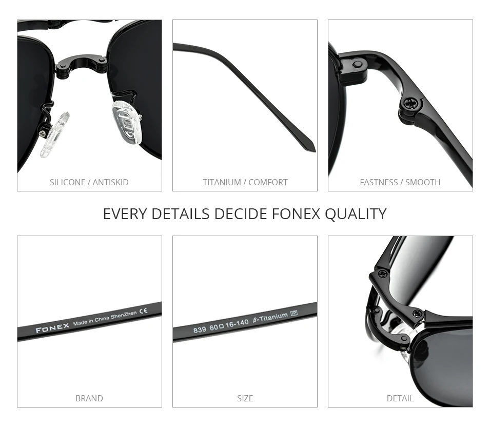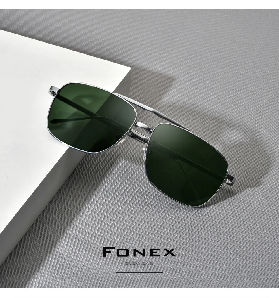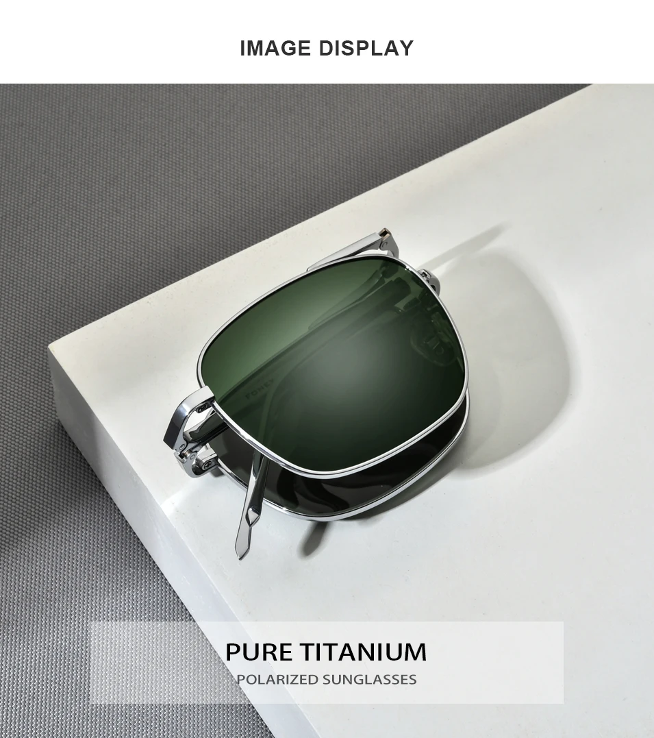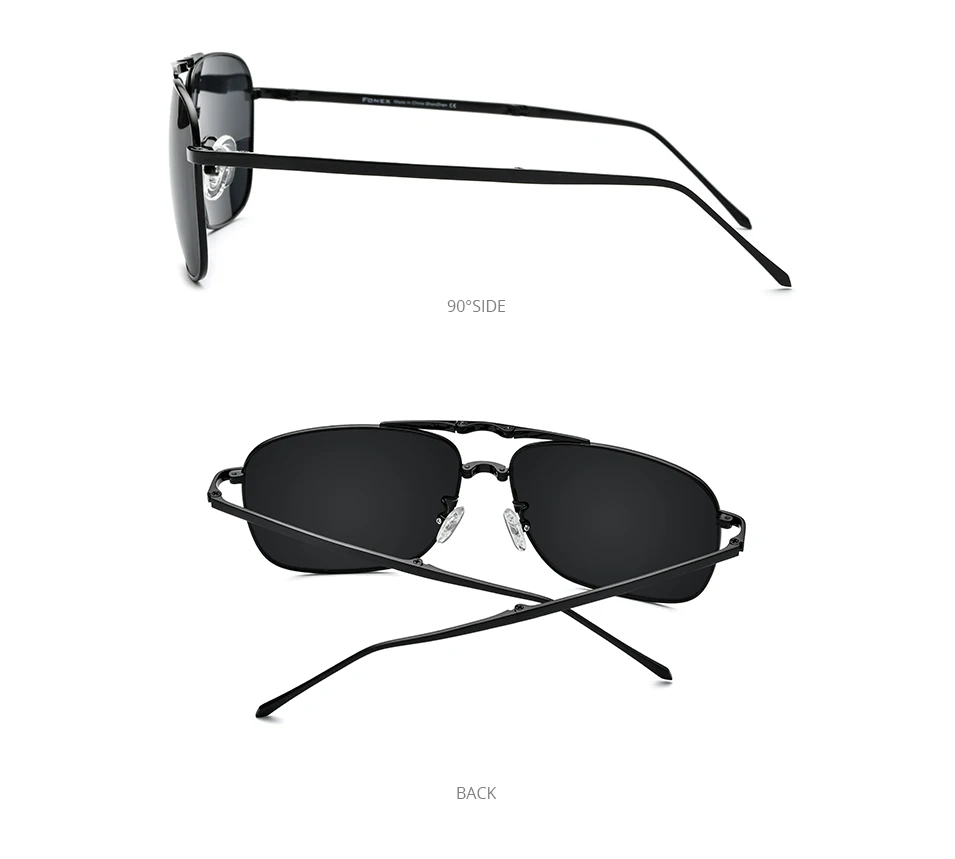 Lenses Color: GRAY - FONEX Pure Titanium Polarized Sunglasses Men Folding Classic Square Sun Glasses for Men New High Quality Male Shades 839