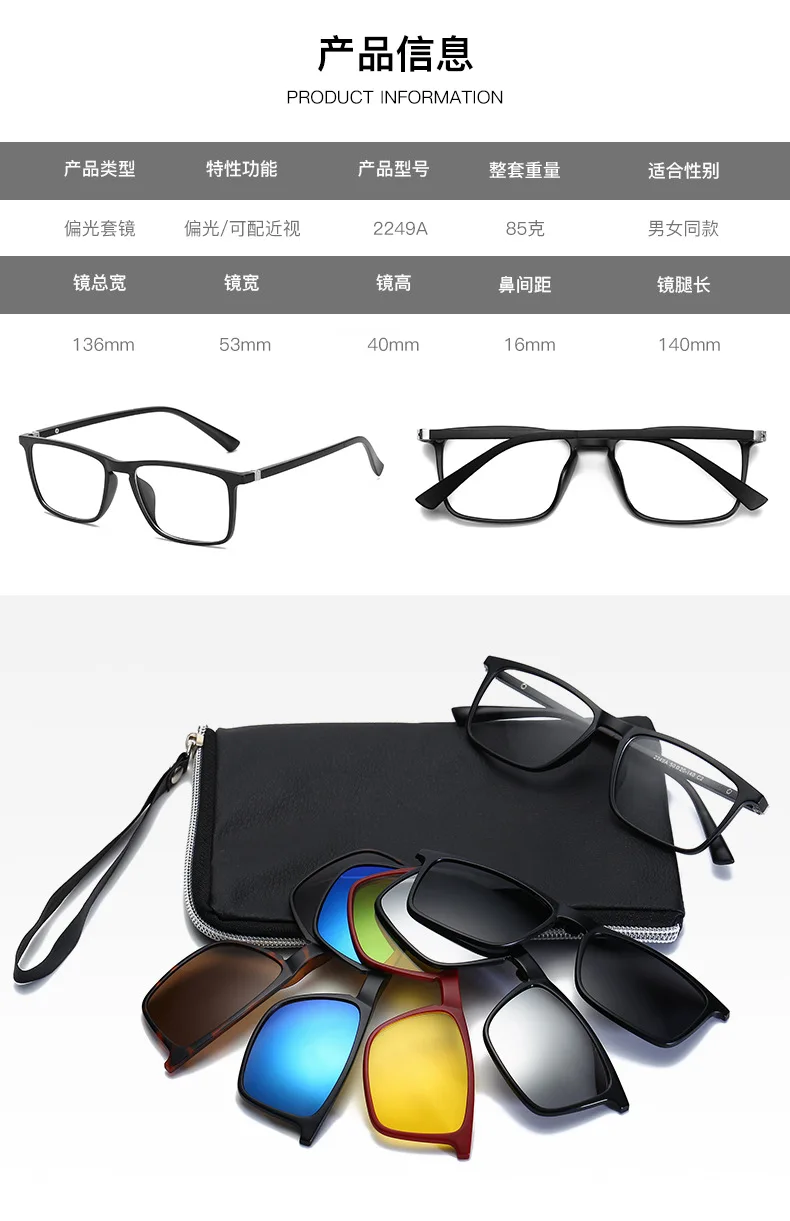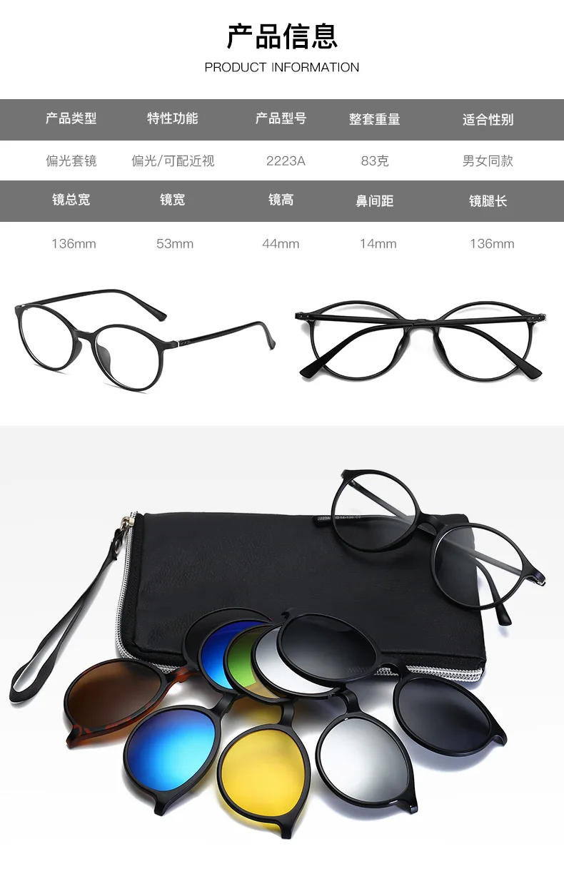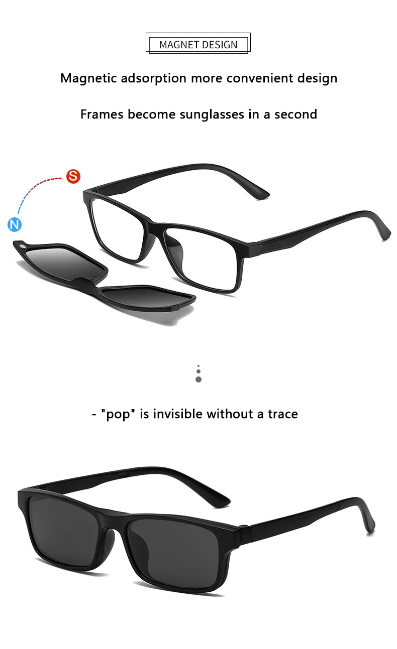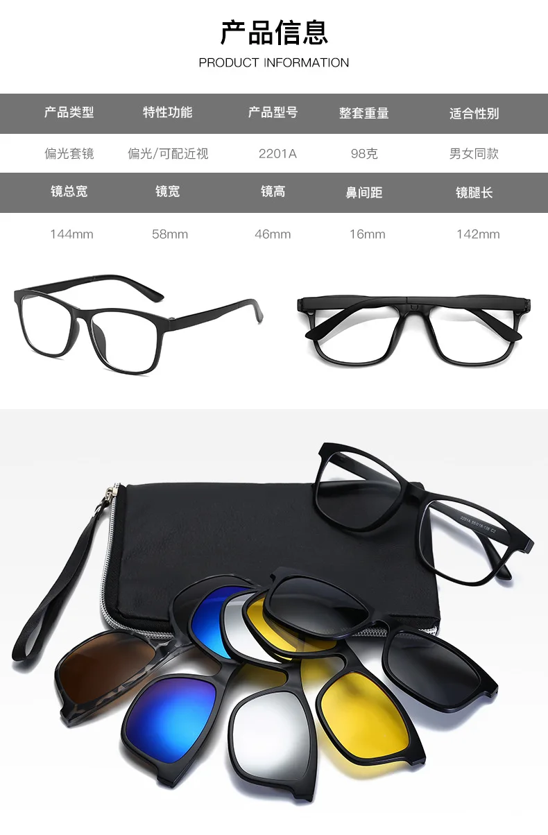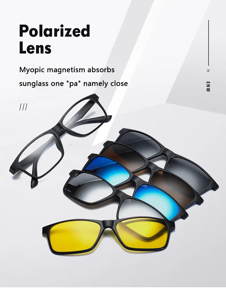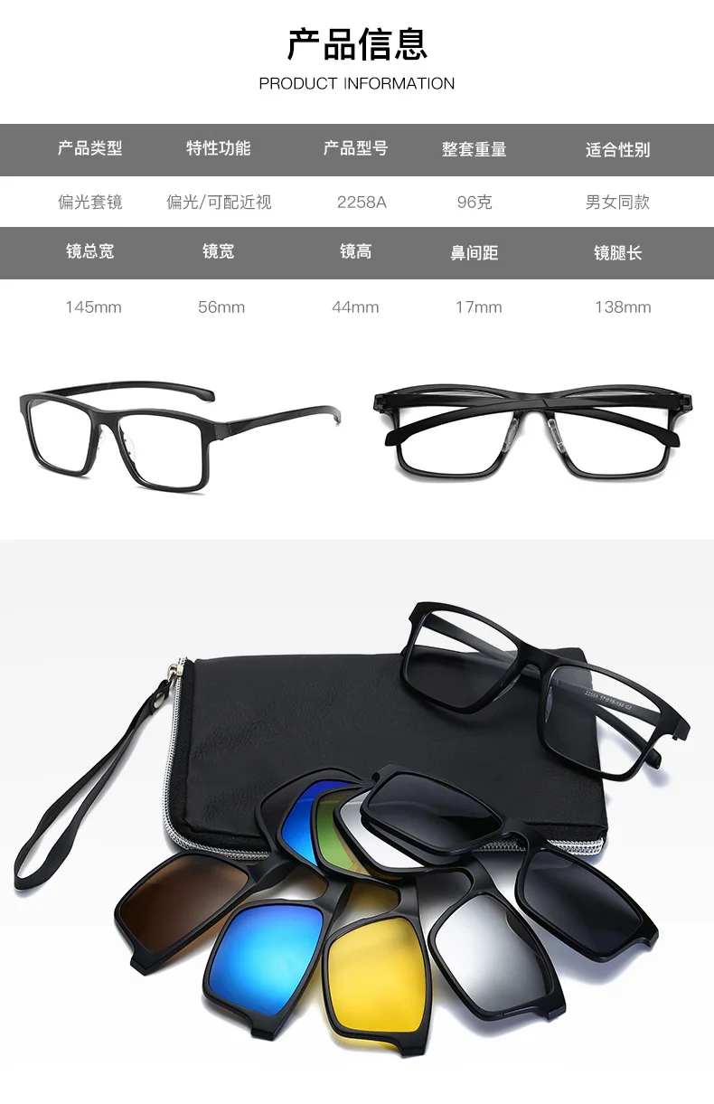 Lenses Color: GRAY, Ships From: CHINA, Frame Color: WHITE - 6 In 1 Spectacle Frame Men Women With 5 PCS Clip On Polarized Sunglasses Magnetic Glasses Male Computer Optical 2201