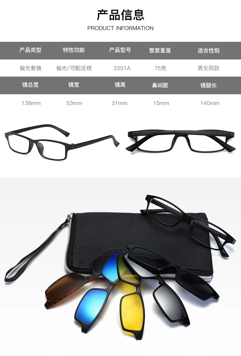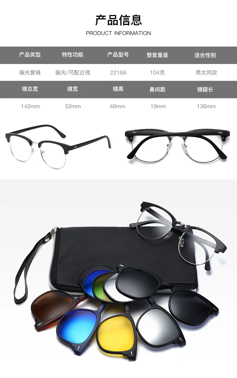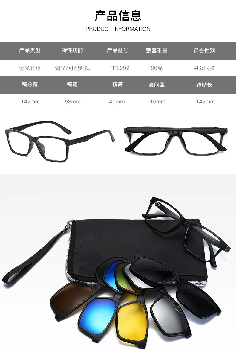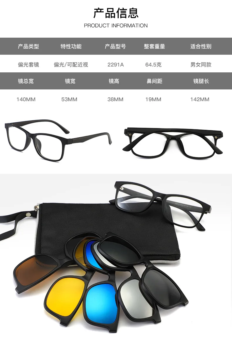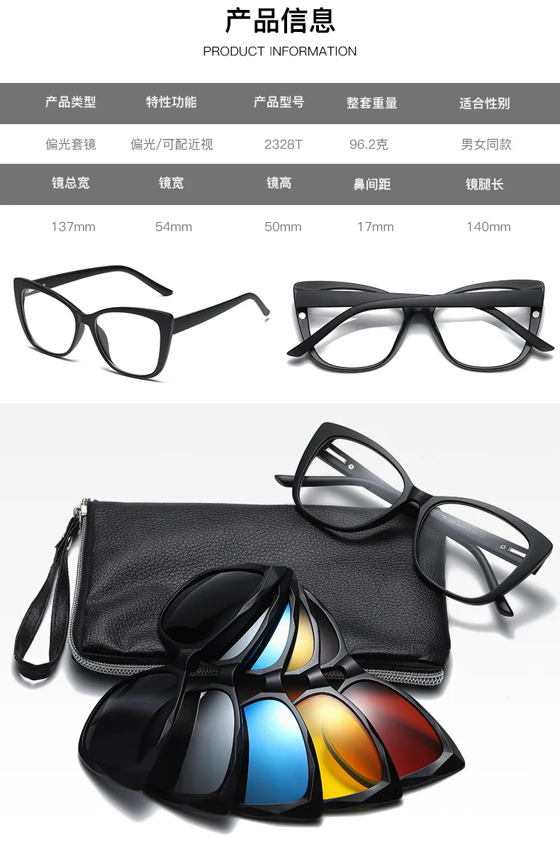 Lenses Color: GRAY, Ships From: CHINA, Frame Color: WHITE - 6 In 1 Spectacle Frame Men Women With 5 PCS Clip On Polarized Sunglasses Magnetic Glasses Male Computer Optical 2201