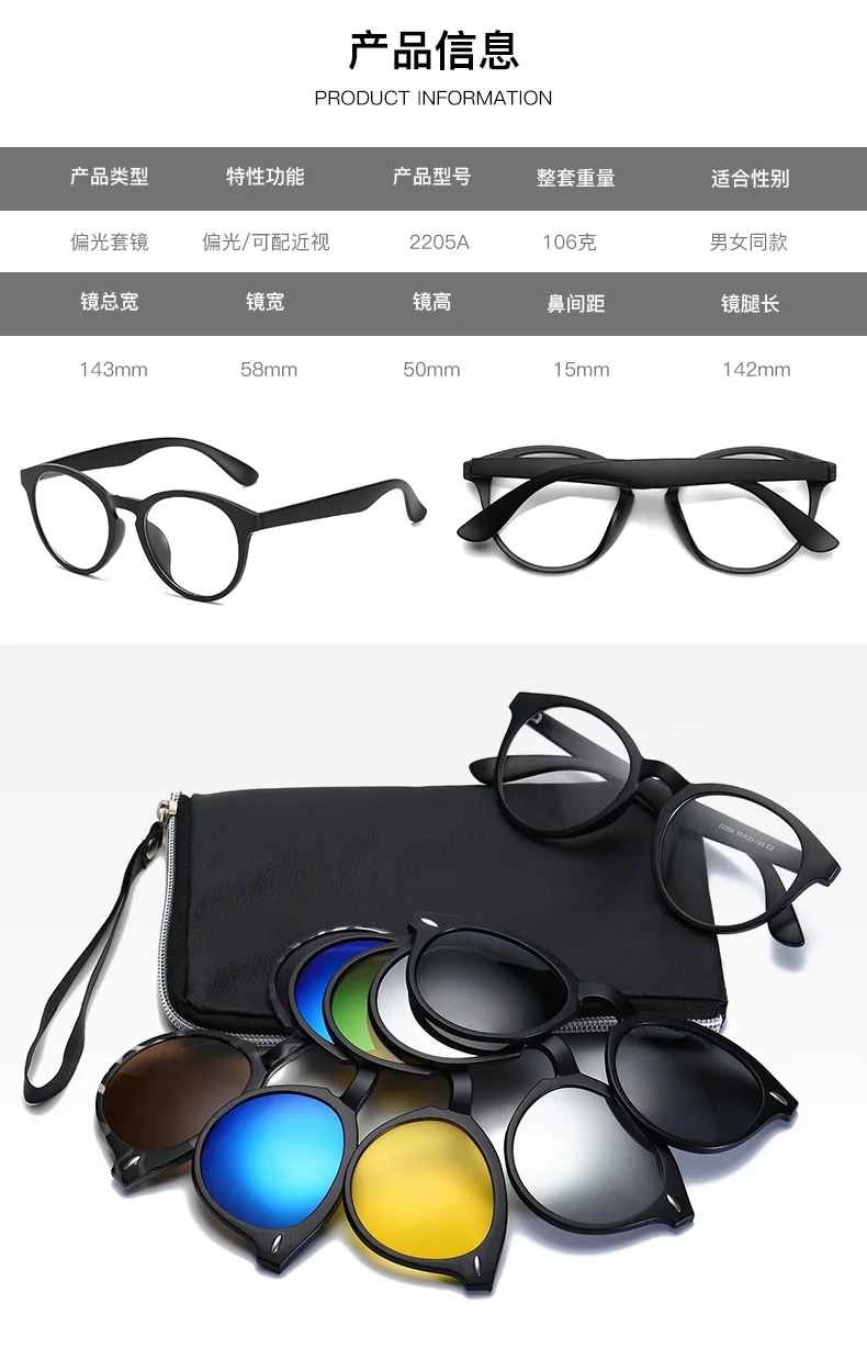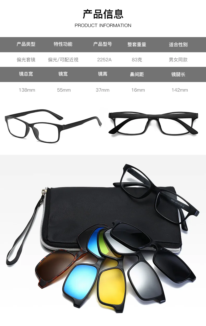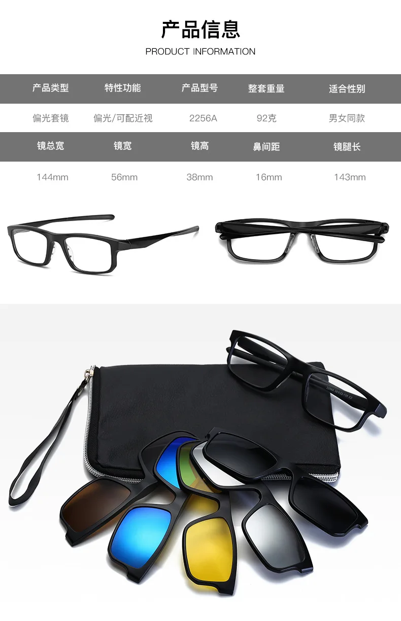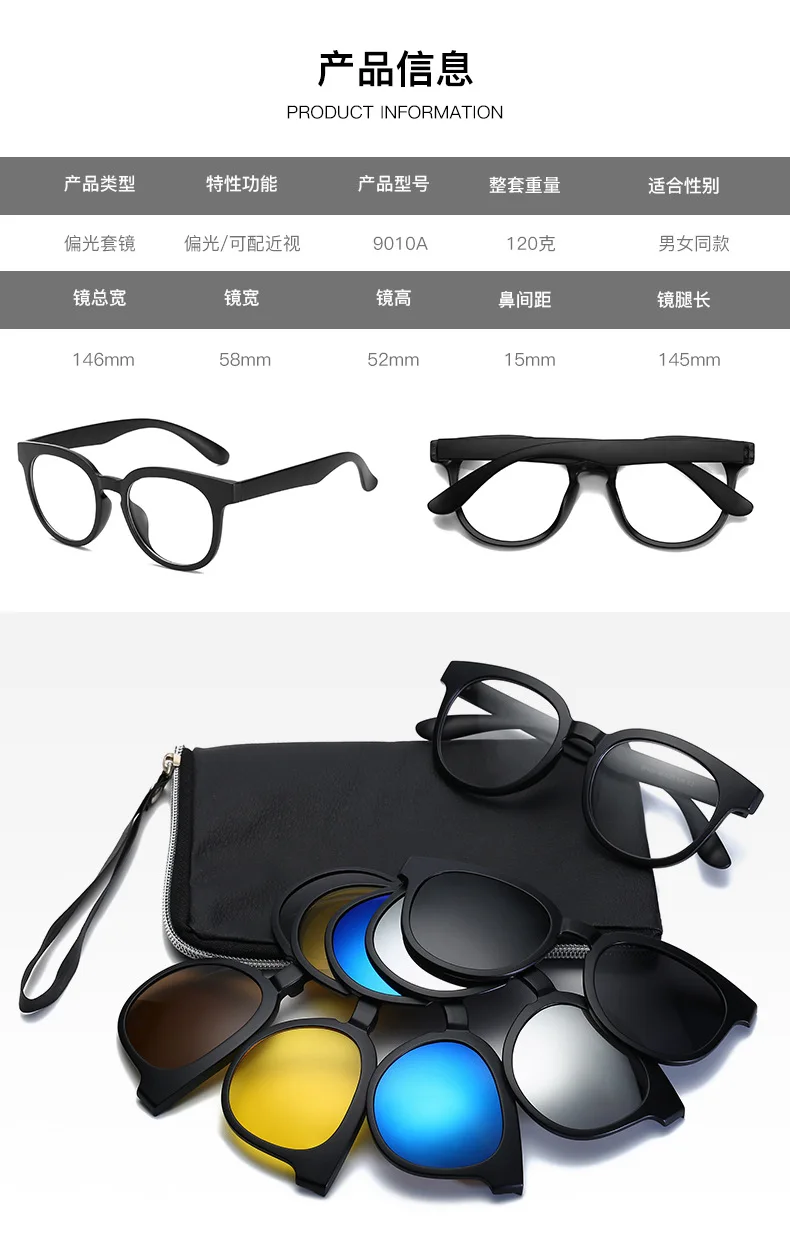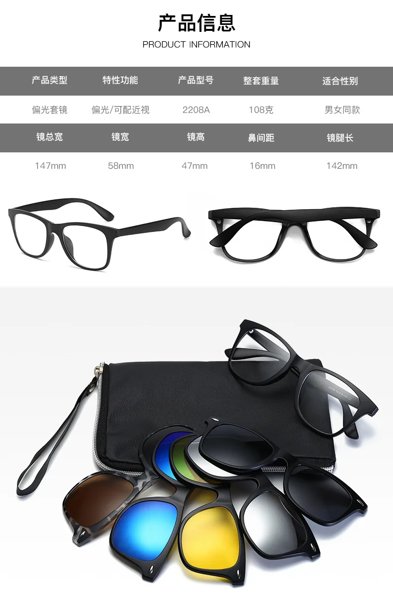 Lenses Color: GRAY, Ships From: CHINA, Frame Color: WHITE - 6 In 1 Spectacle Frame Men Women With 5 PCS Clip On Polarized Sunglasses Magnetic Glasses Male Computer Optical 2201