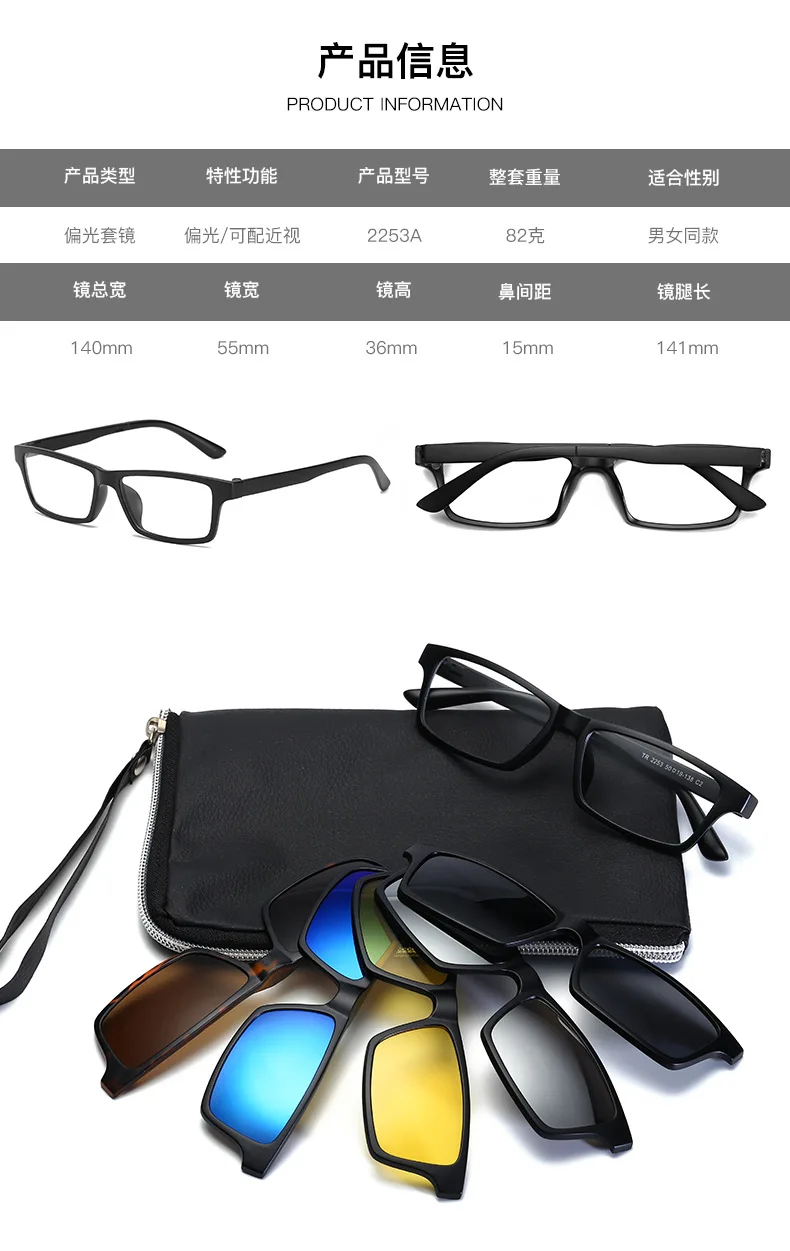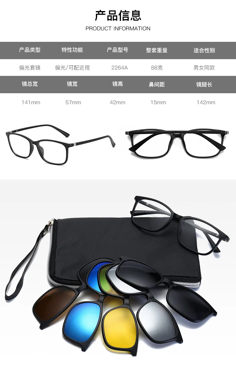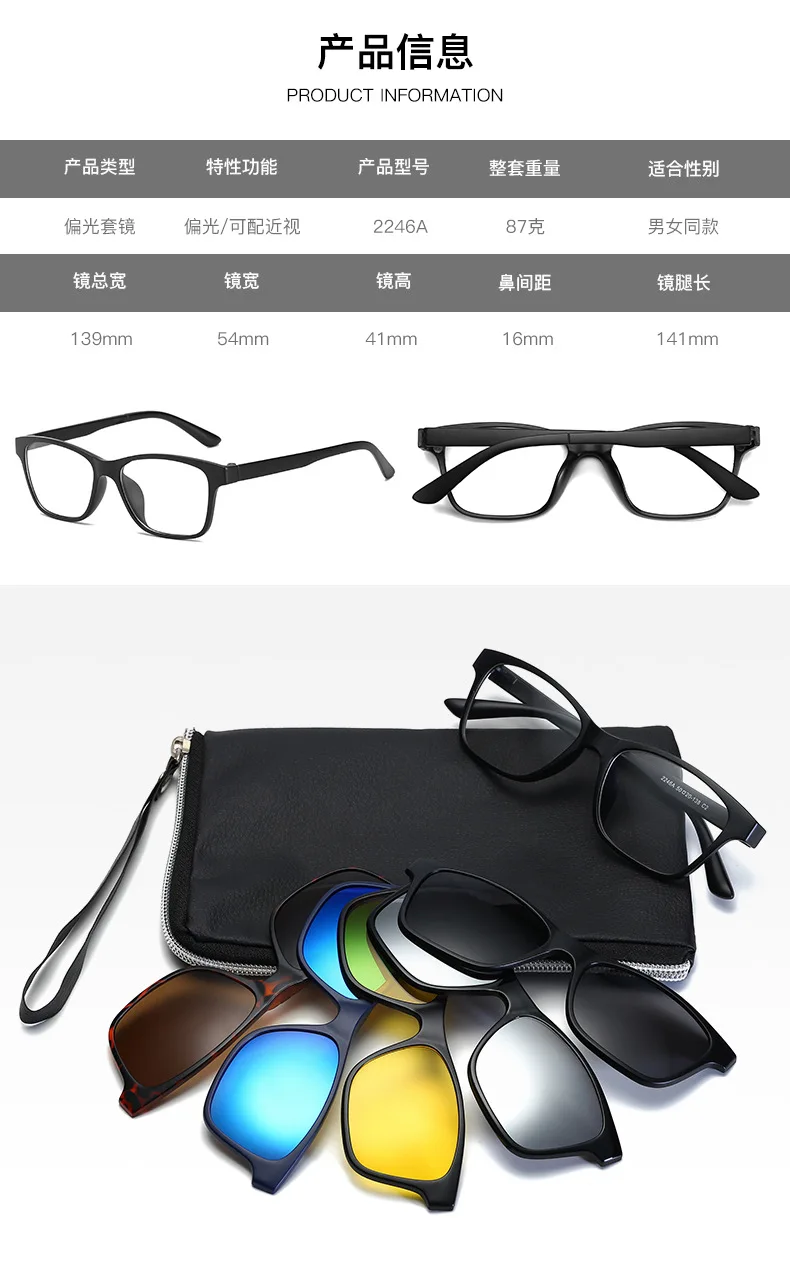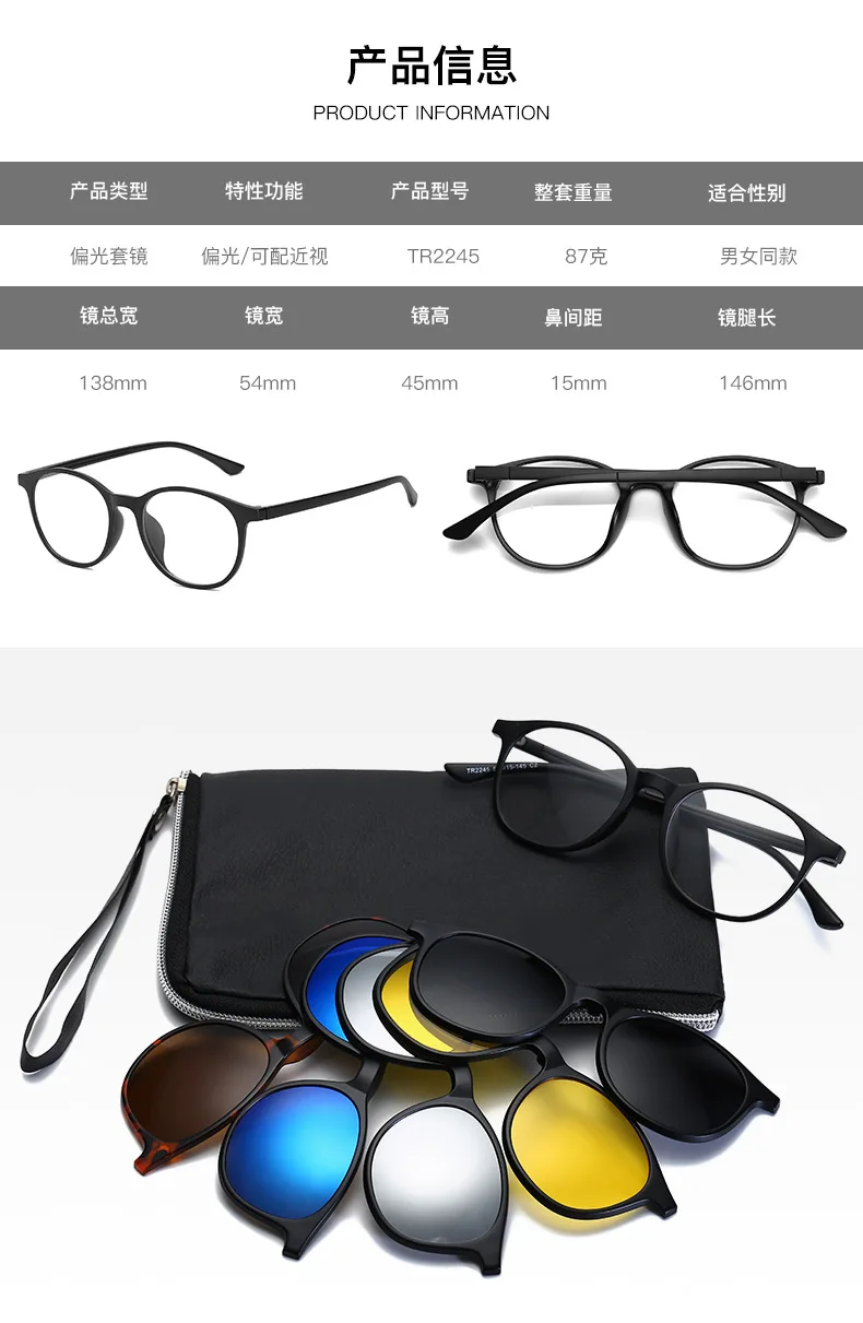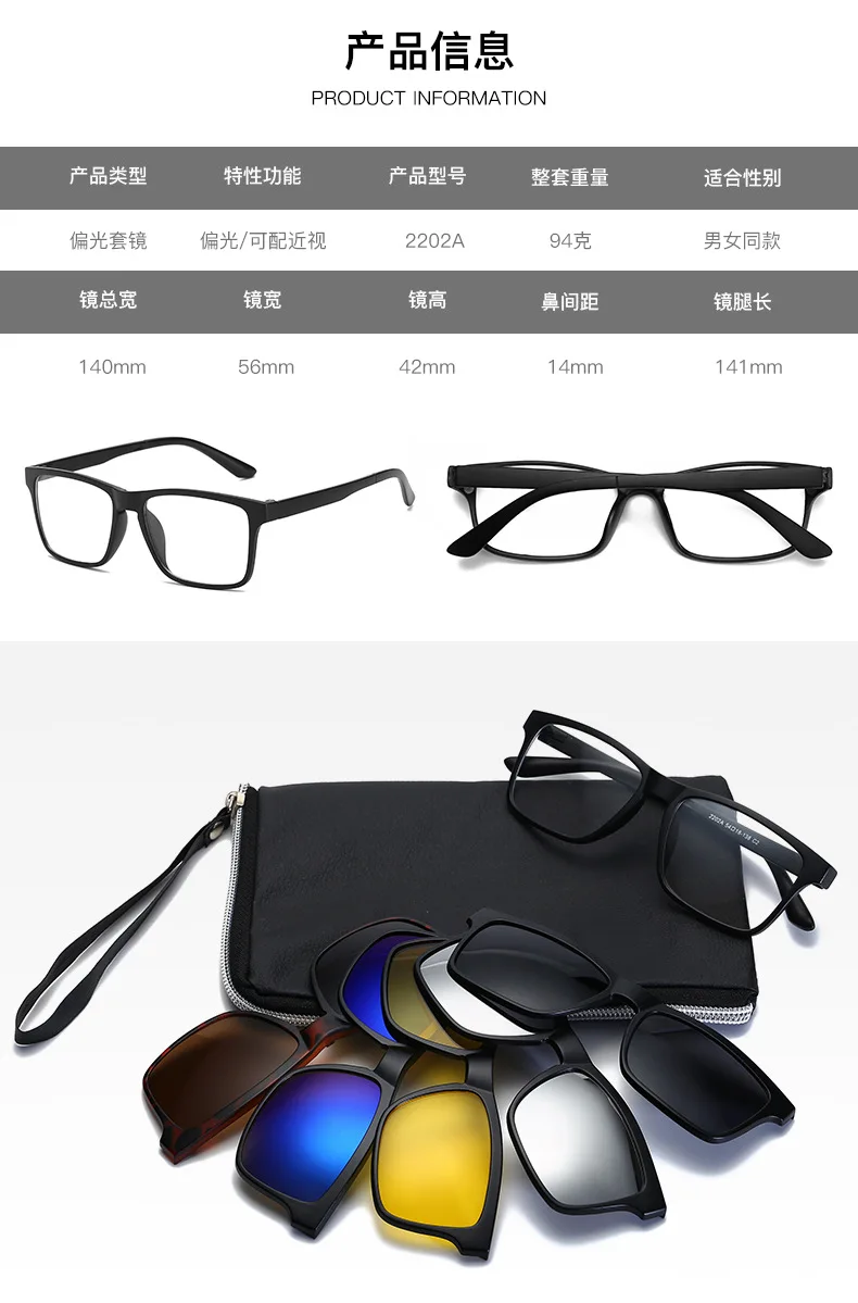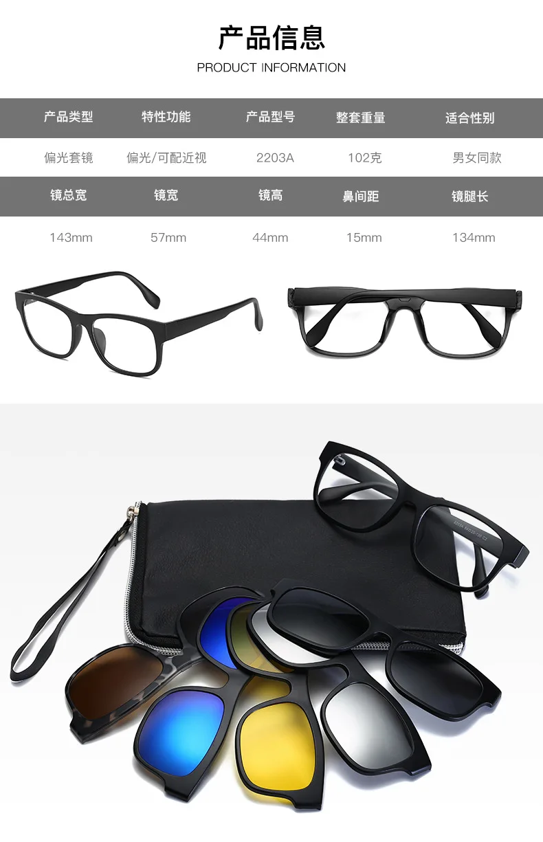 Lenses Color: GRAY, Ships From: CHINA, Frame Color: WHITE - 6 In 1 Spectacle Frame Men Women With 5 PCS Clip On Polarized Sunglasses Magnetic Glasses Male Computer Optical 2201