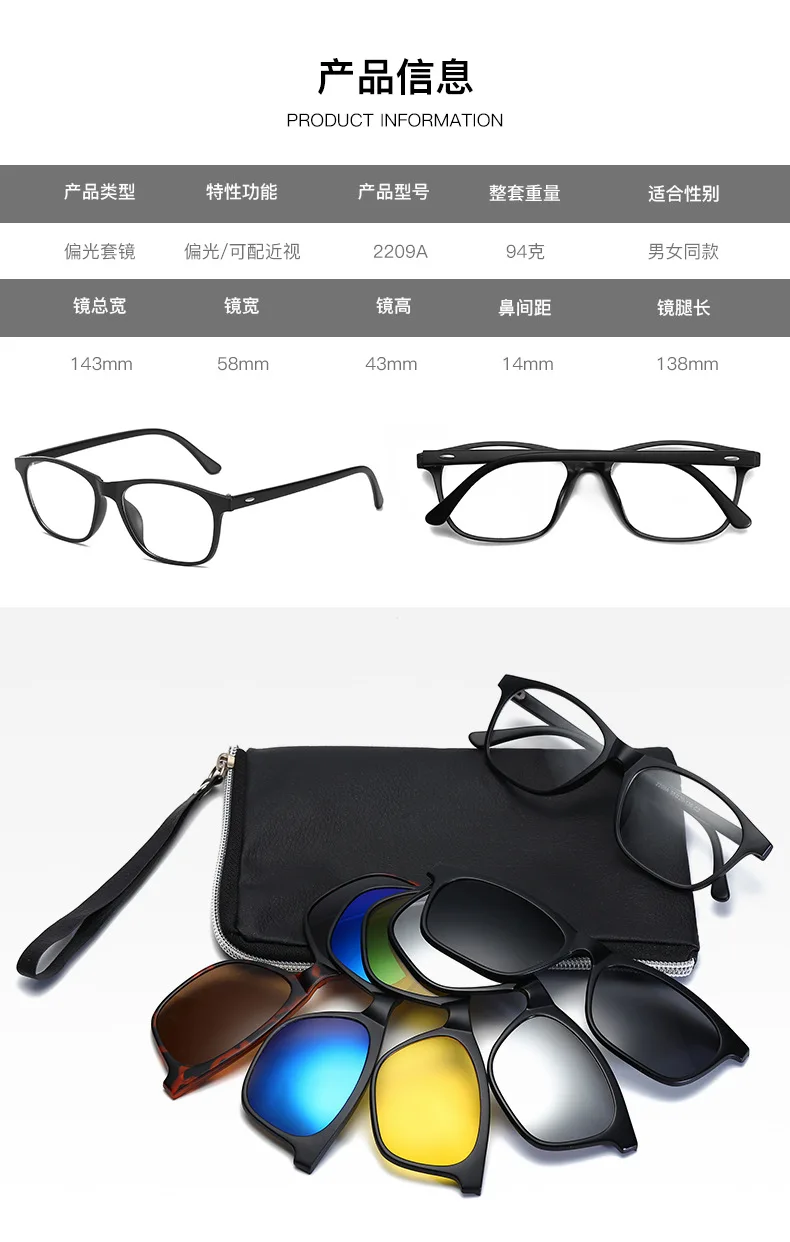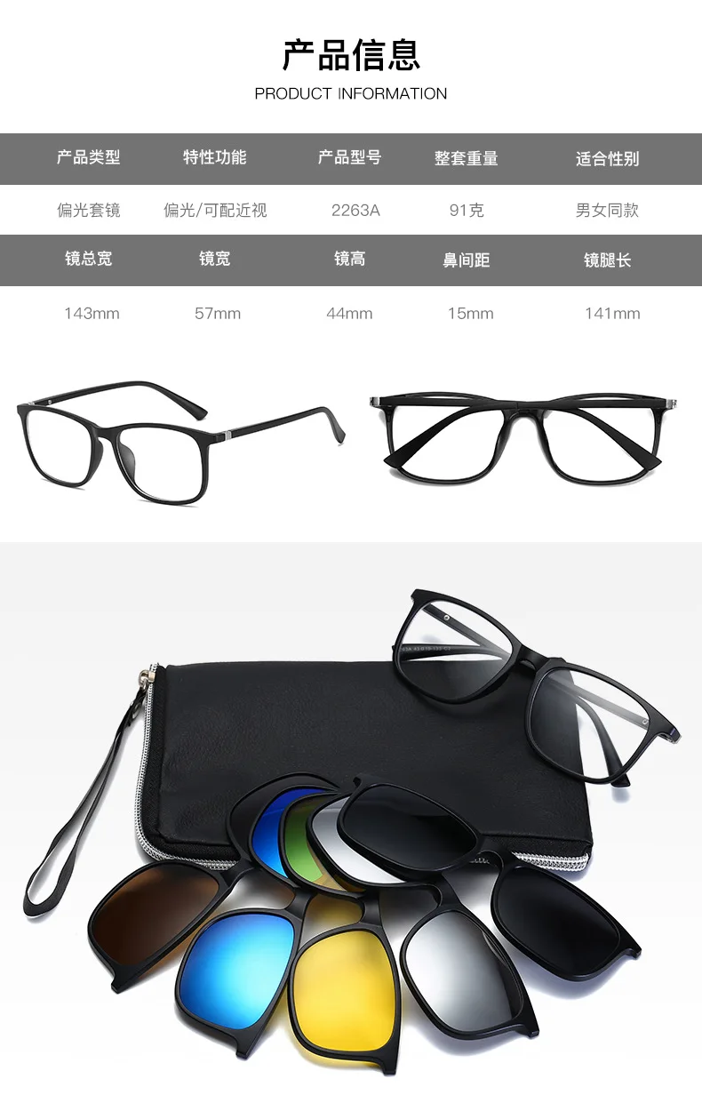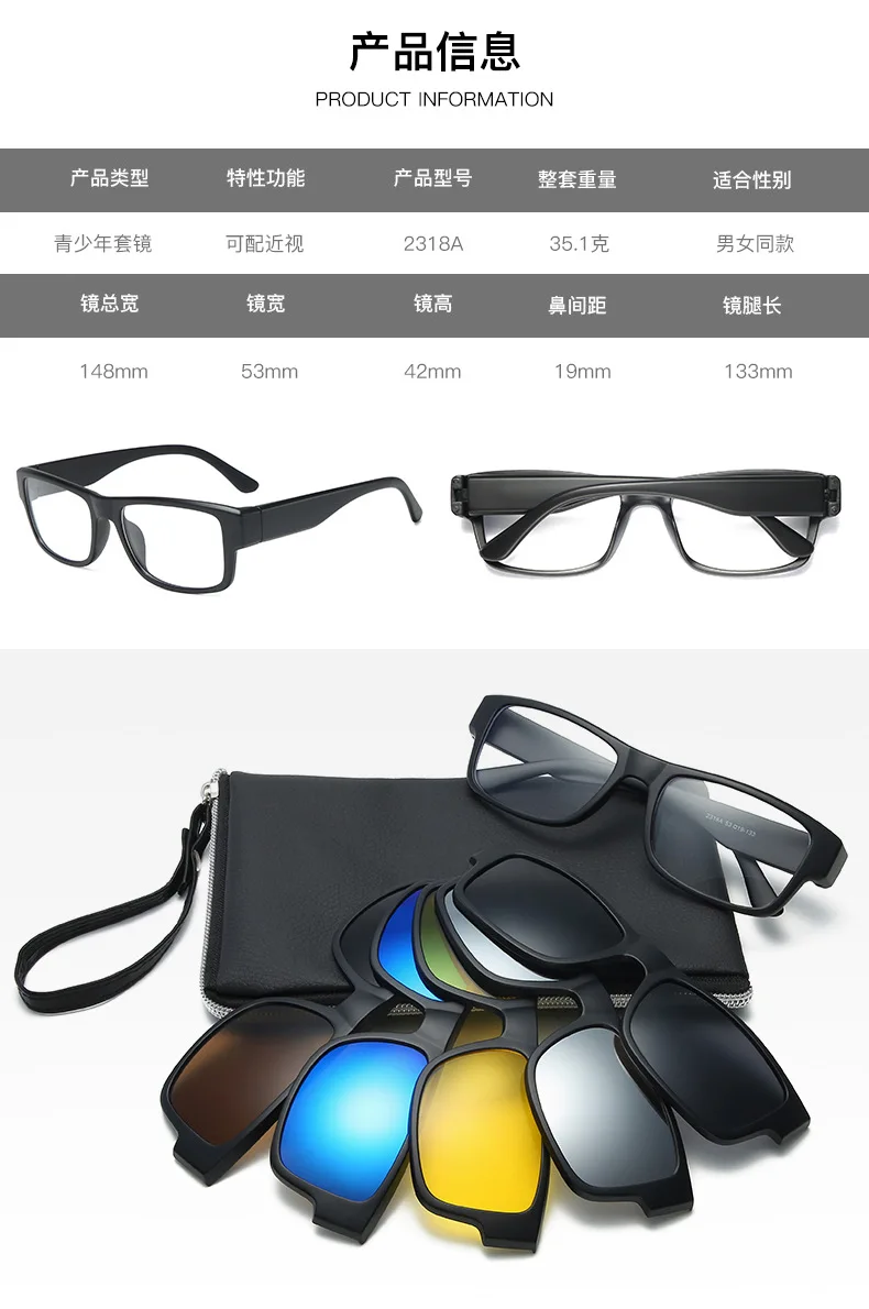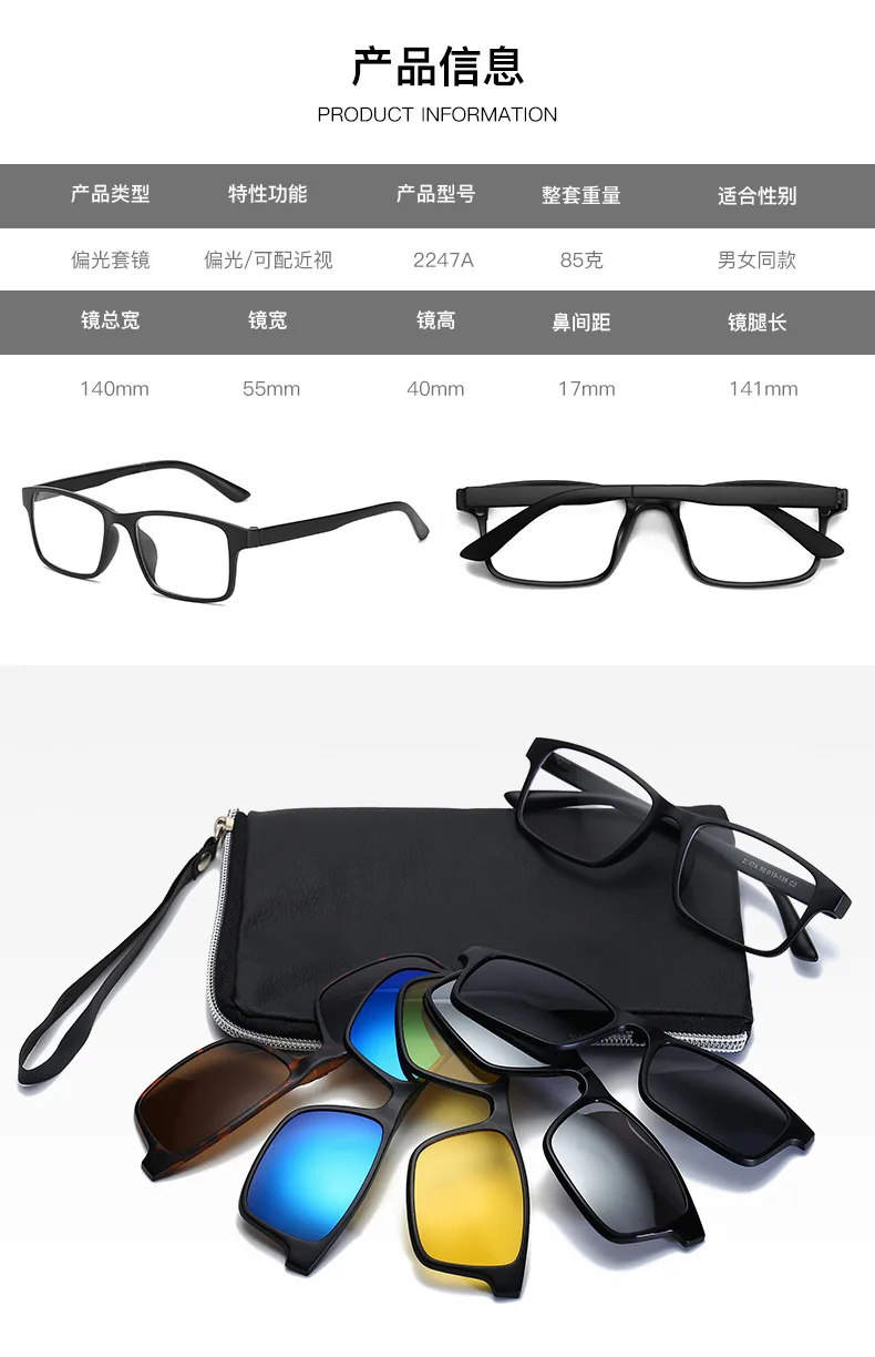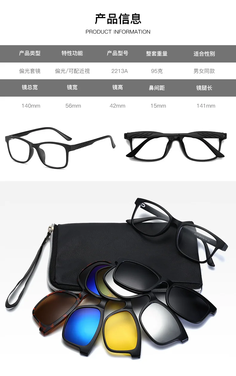 Lenses Color: GRAY, Ships From: CHINA, Frame Color: WHITE - 6 In 1 Spectacle Frame Men Women With 5 PCS Clip On Polarized Sunglasses Magnetic Glasses Male Computer Optical 2201