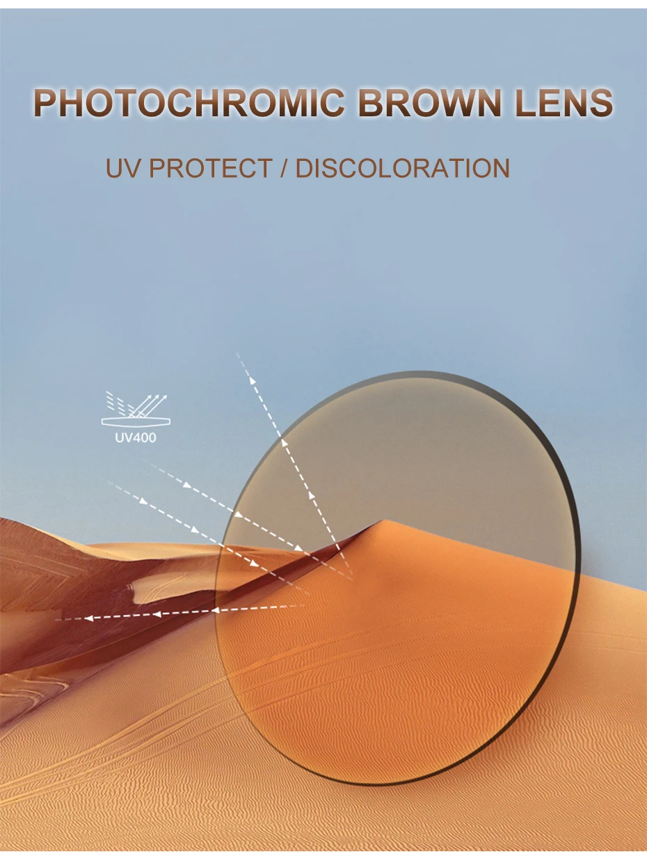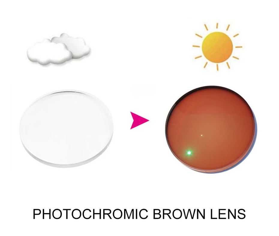 Lenses Color: Khaki, Lens Index: 1.56 - CAPONI Photochromic Brown Optical Aspherical Lens CR-39 Resin Customized Prescription Myopia Hyperopia 1.56 1.61 2pcs/1 pair