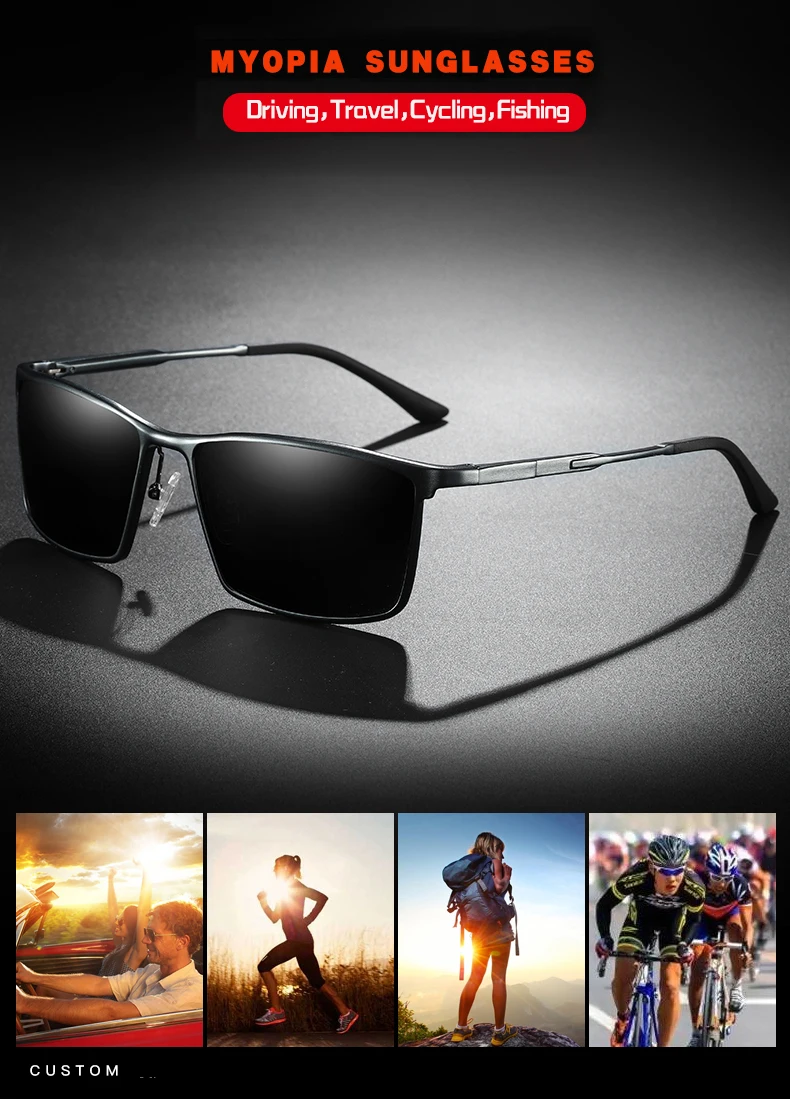 Lenses Color: Red, Frame Color: Yellow - Men's sunglasses myopia with diopter polarized prescription glasses UC400 retro anti-glare driving goggles square black shades