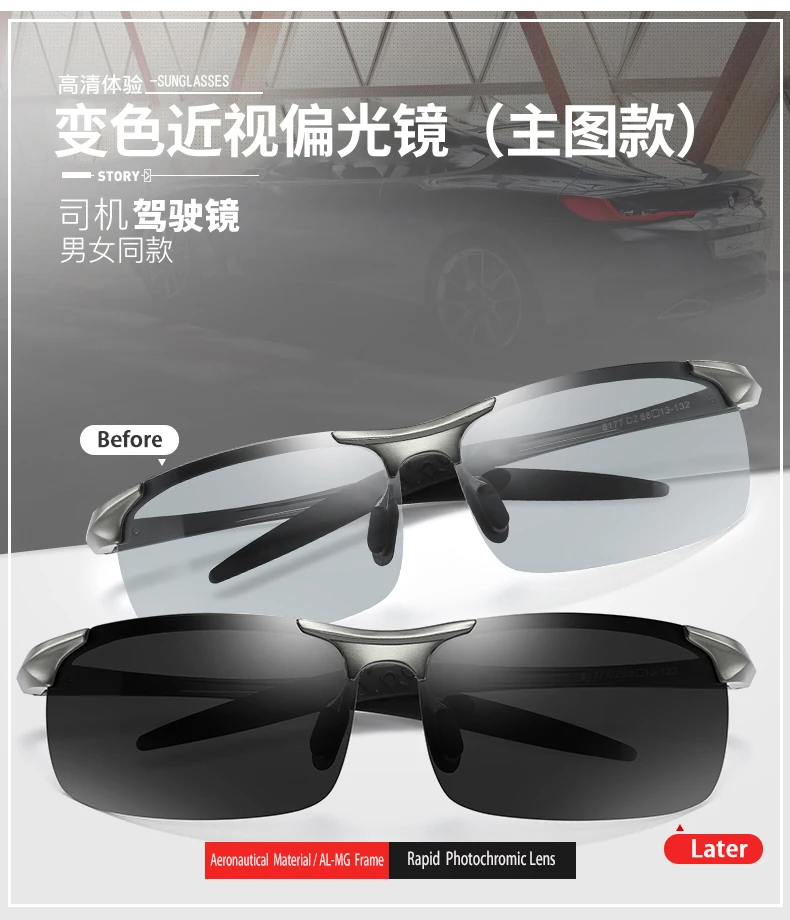 Lenses Color: Yellow, Frame Color: green - Myopia Photochromic Sunglasses Diopter Polarized Driving Goggle Men Chameleon Change Color transition Prescription Sun Glasses