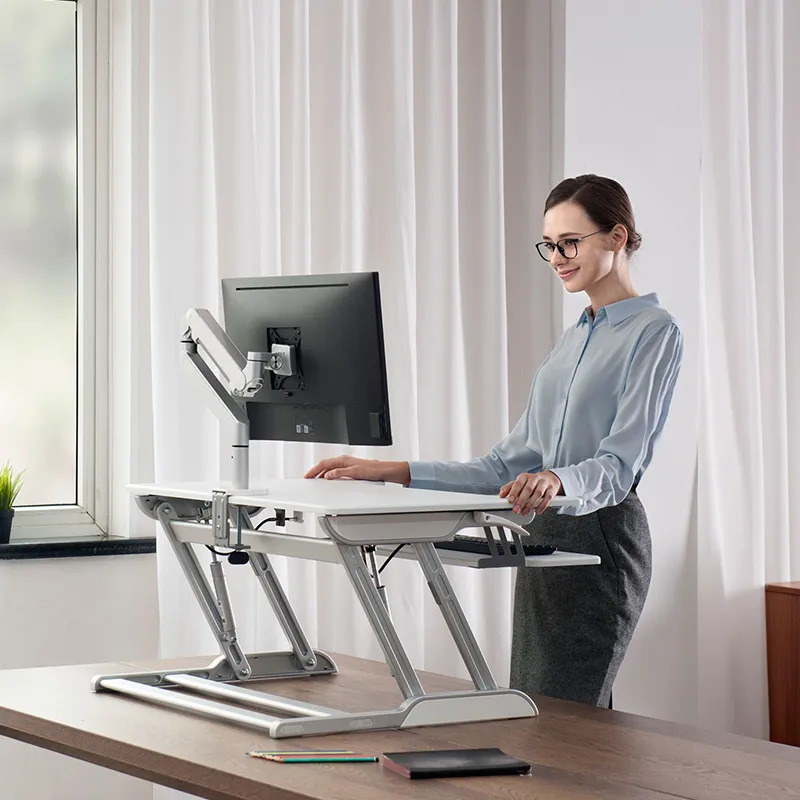 The lifting mechanism allows you to adjust the height of your monitor or laptop, ensuring it’s at eye level for optimal comfort. This flexibility helps you create the perfect viewing angle, whether you're working on documents, coding, gaming, or streaming. The ability to adjust the height ensures that the stand can be customized to fit individual needs and preferences.