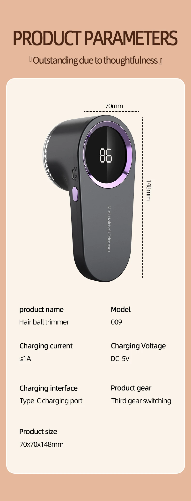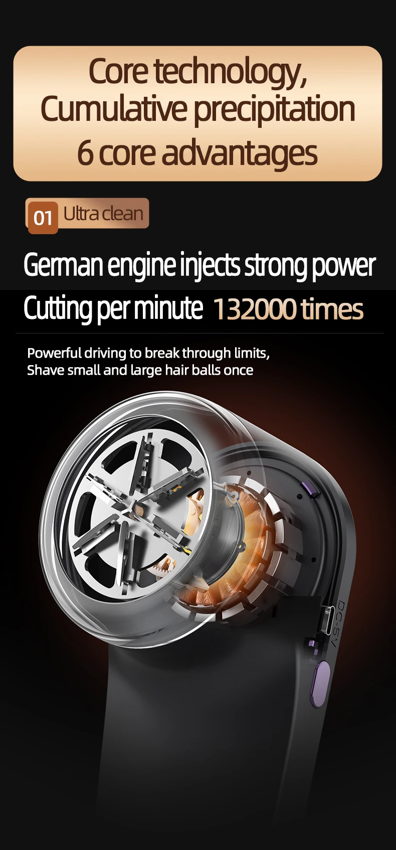 - Motor: High-speed motor for efficient lint removal