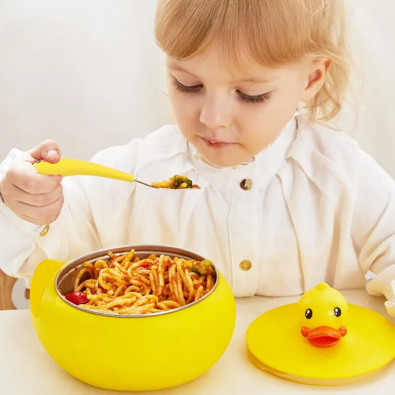 "My daughter loves this bowl! The duck design is adorable, and it keeps her food warm for longer. It’s easy for her to handle, and cleaning it is a breeze."